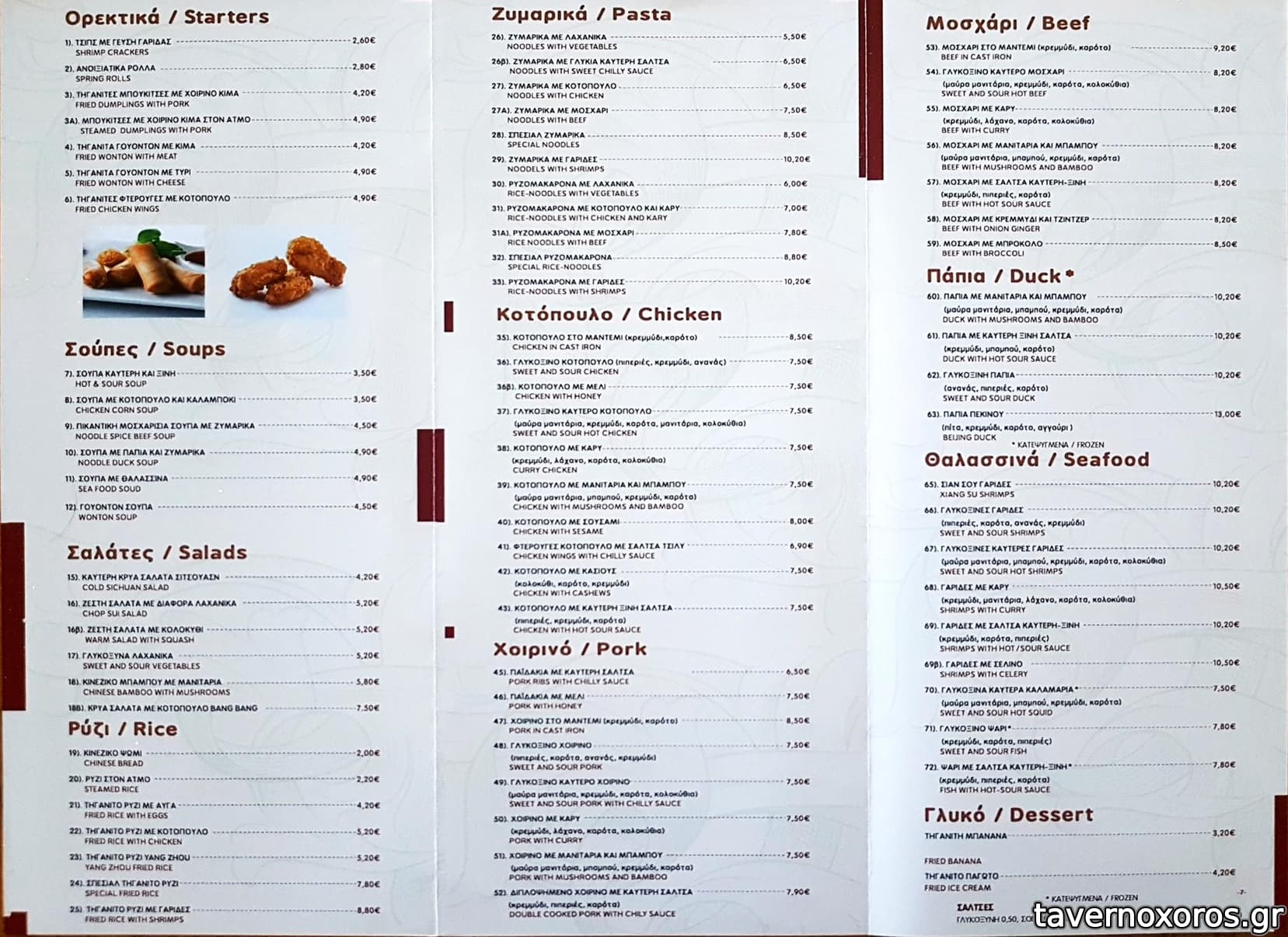 - Σούπες: εξαιρετικές οι περισσότερες ιδίως η hot & sour. Καλές και η θαλασσινών, η πάπια, η καλαμπόκι.