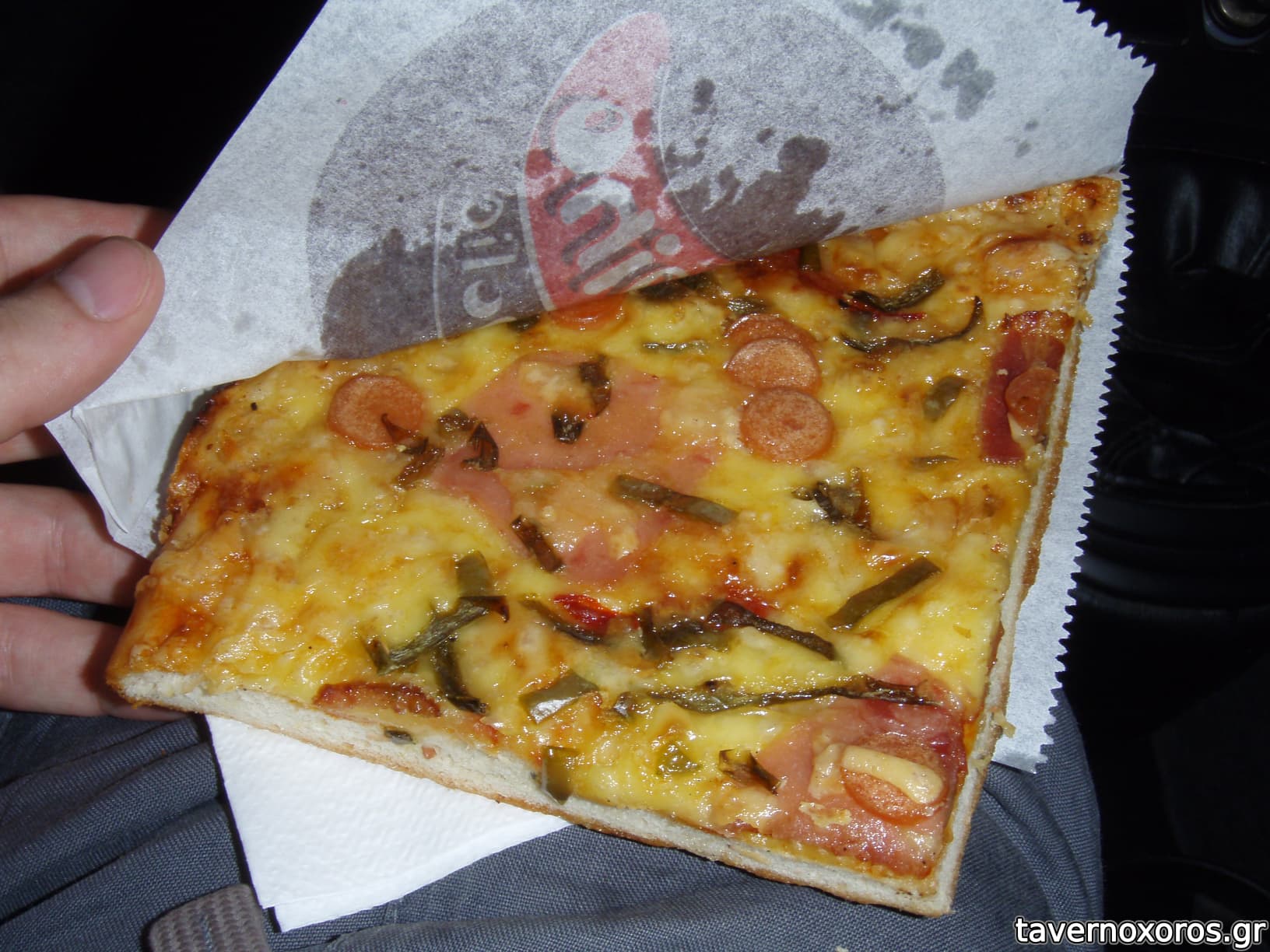 Περνώντας απόψε κάνοντας βόλτες μετά από αρνητικό αποτέλεσμα σε αθλητικό γεγονός, μου τράβηξε την προσοχή ένα τεράστιο πεινιρλοειδές (ίσαμε δυο μεγάλα κομμάτια πίτσα) με κοτόπουλο, οπότε μπήκα και ρώτησα σχετικά. Πίτσα μου το ονόμασε, εμένα μου θύμισε περισσότερο αυτά τα pinsa που βρίσκεις στο todays, και μάλλον πρέπει να είναι new entry καθότι μετά από μένα ρώτησαν κι άλλοι. Πρόκειται λοιπόν για ωραία, ξεροψημένη ζύμη με κοτόπουλο και κρέμα γάλακτος, χορταστική αλλά καθόλου βαριά ακόμα και τώρα που γράφω, περίπου 3.5 ώρες μετά, για τα 3.30 που έδωσα αρκετά vfm θεωρώ. Ήταν η πρώτη φορά που αποφασίζω να μπω και θα ξαναπεράσω (ελπίζω αυτή τη φορά μετά από νικηφόρο αποτέλεσμα) γιατί και τα διάφορα πεϊνιρλί κ.λπ. που είδα μου φάνηκαν αρκετά τραβηχτικά. Αξίζει και για προμήθειες πριν από ταξίδι με τρένο, καθότι είναι αρκετά κοντά στο σταθμό.