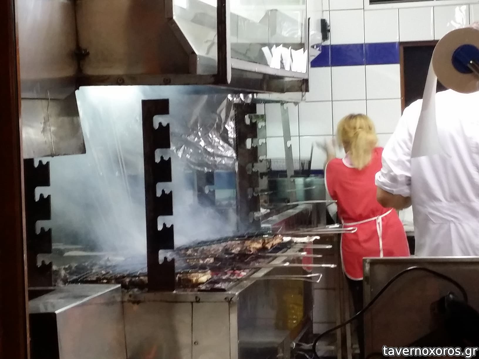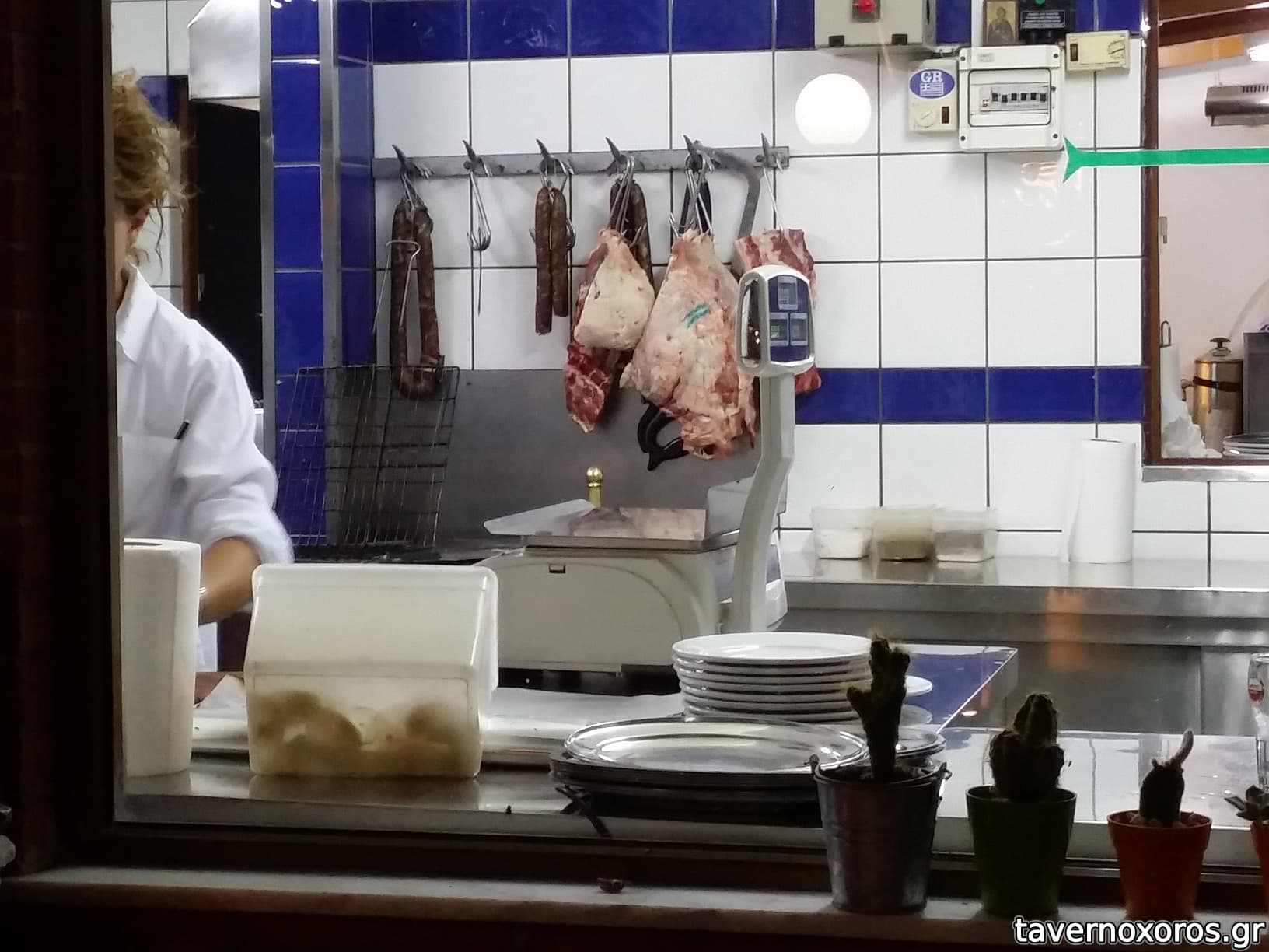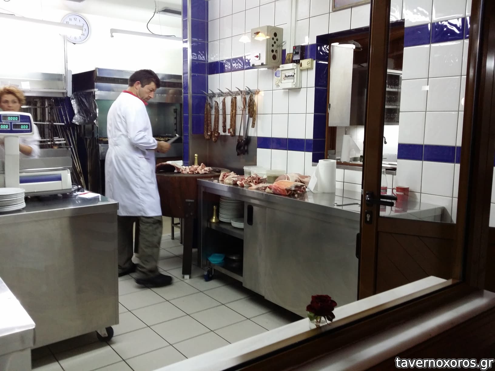 Το μαζαγί είναι κολλητά με κρεοπωλείο όπυ είναι και οι σχάρες σε κοινή θέα.
