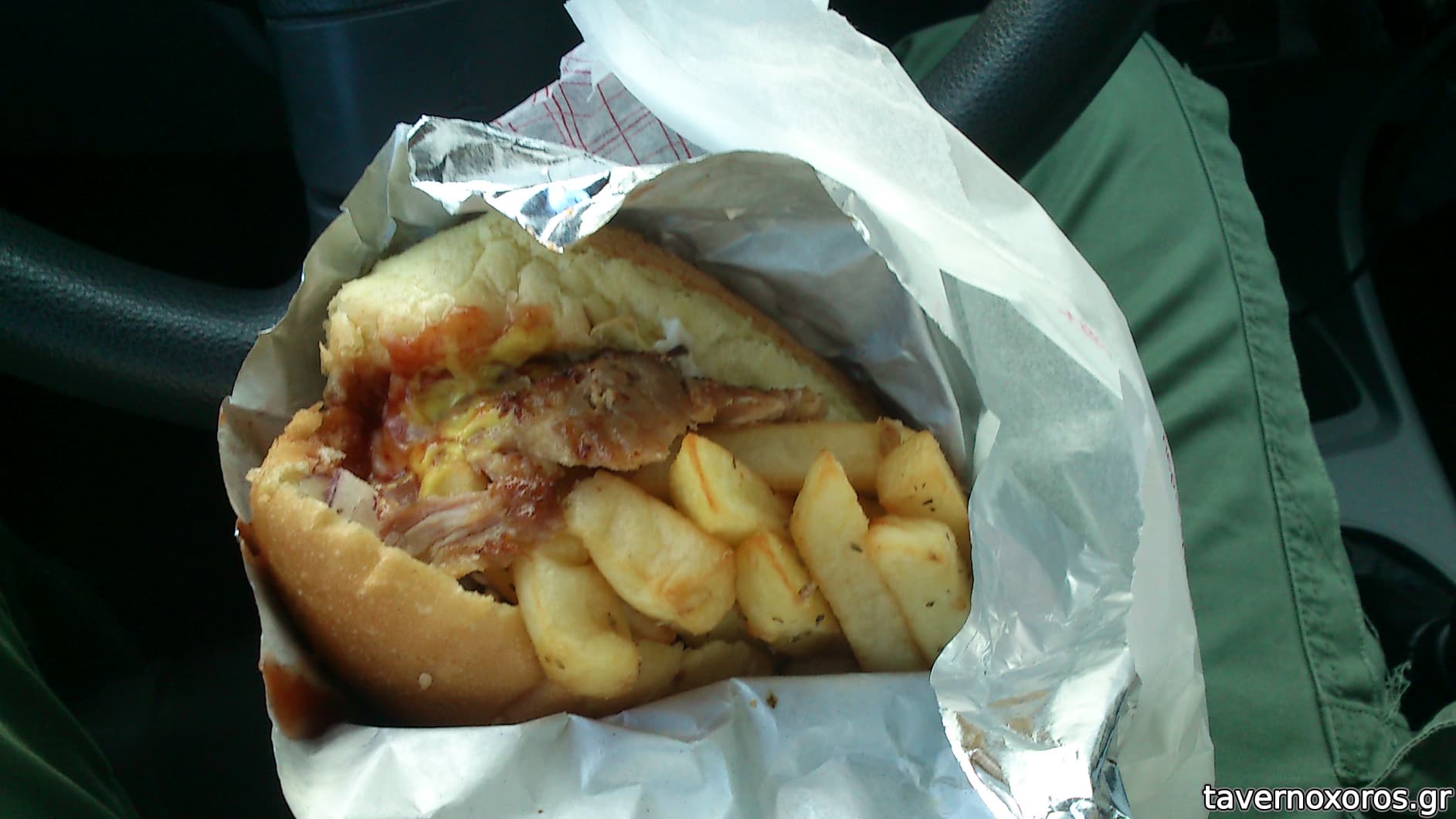 Πατατα απο χθες μαλλον. Γυρος δεν θελω να ξερω απο ποτε. Τον ζεστανε σε ενα τσουκαλι που ειχε στην σχαρα.