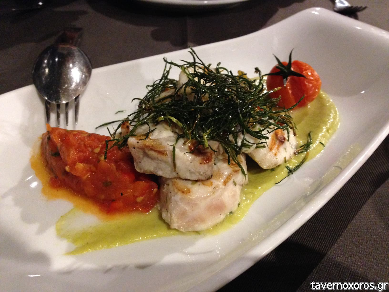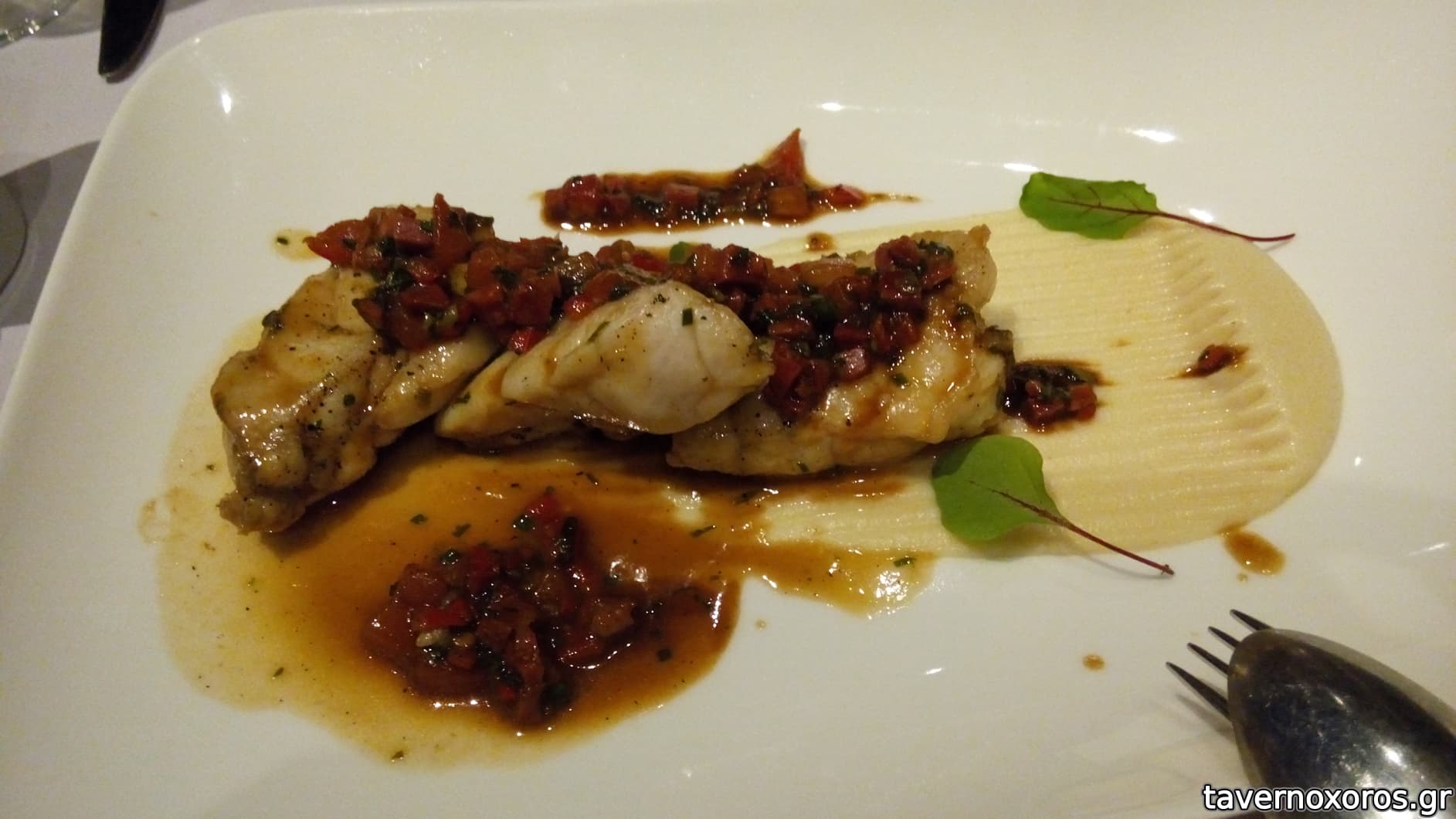 Φέτα σφυρίδα με τσορίθο (30€) πάρα πολύ καλή αν και τσιμπημένο πιάτο για την ποσοτήτά του.