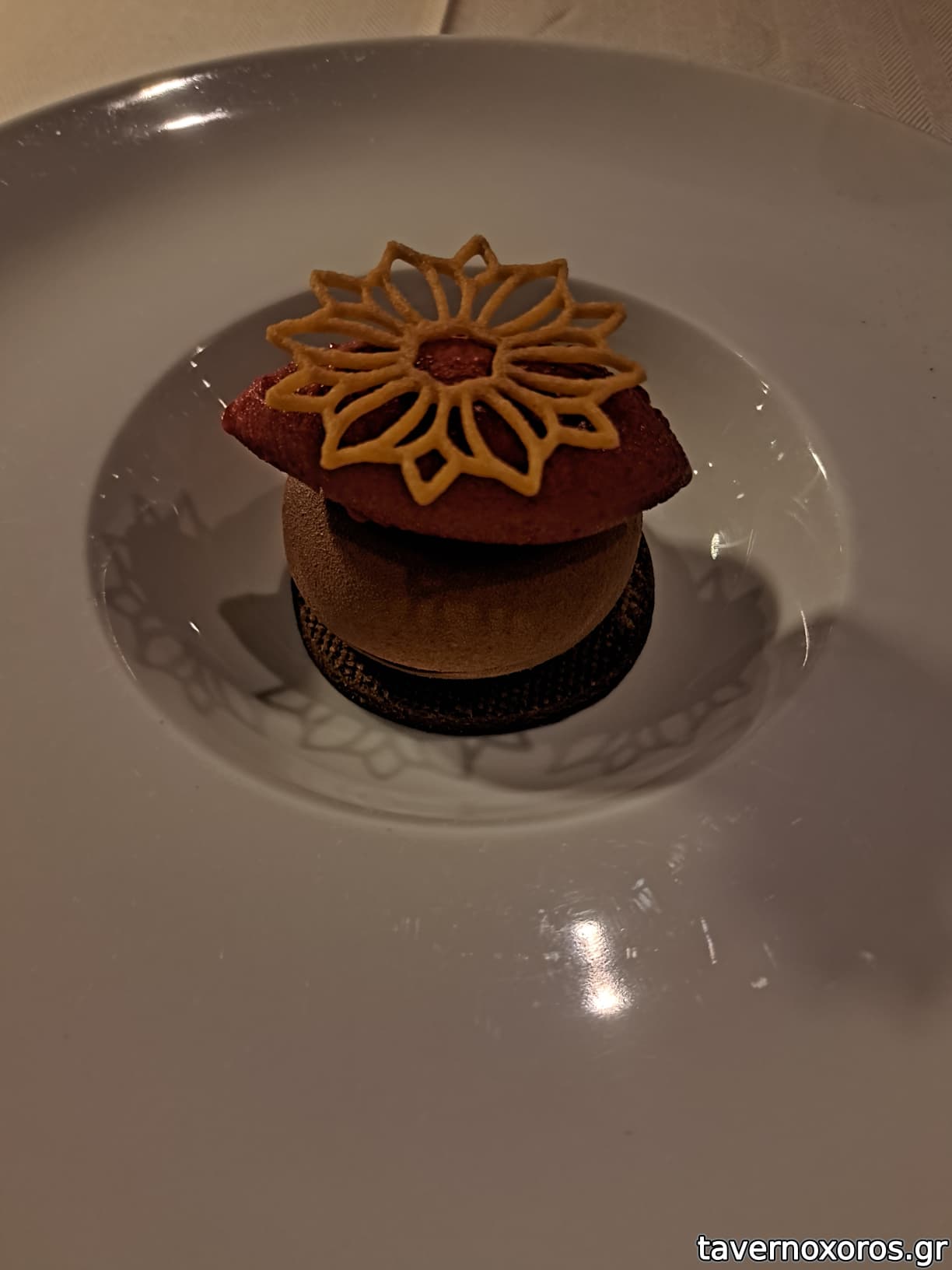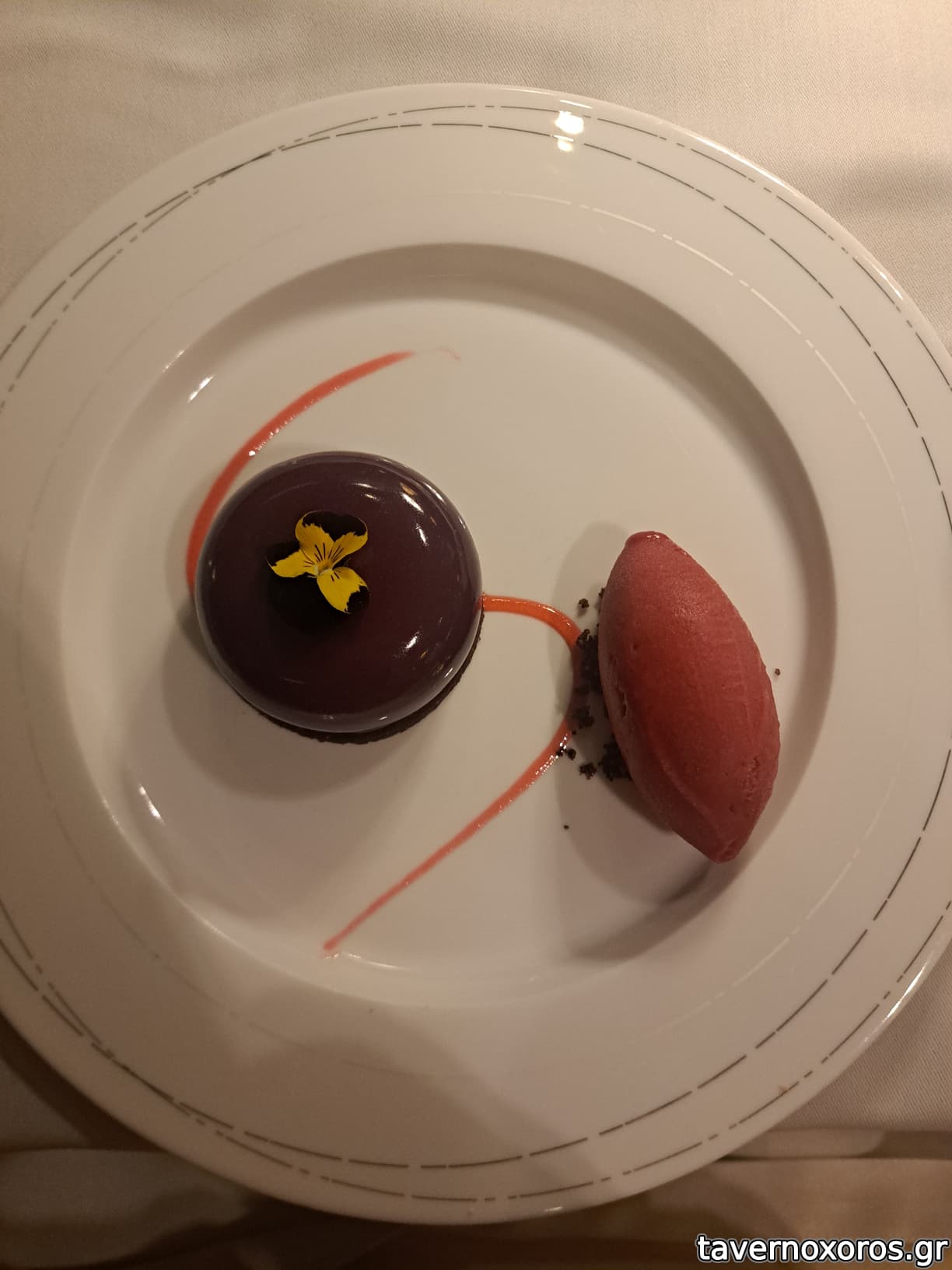 Σοκολάτα, σορμπε σμέουρο - πολύ απλό. Πανέμορφο πάντως.