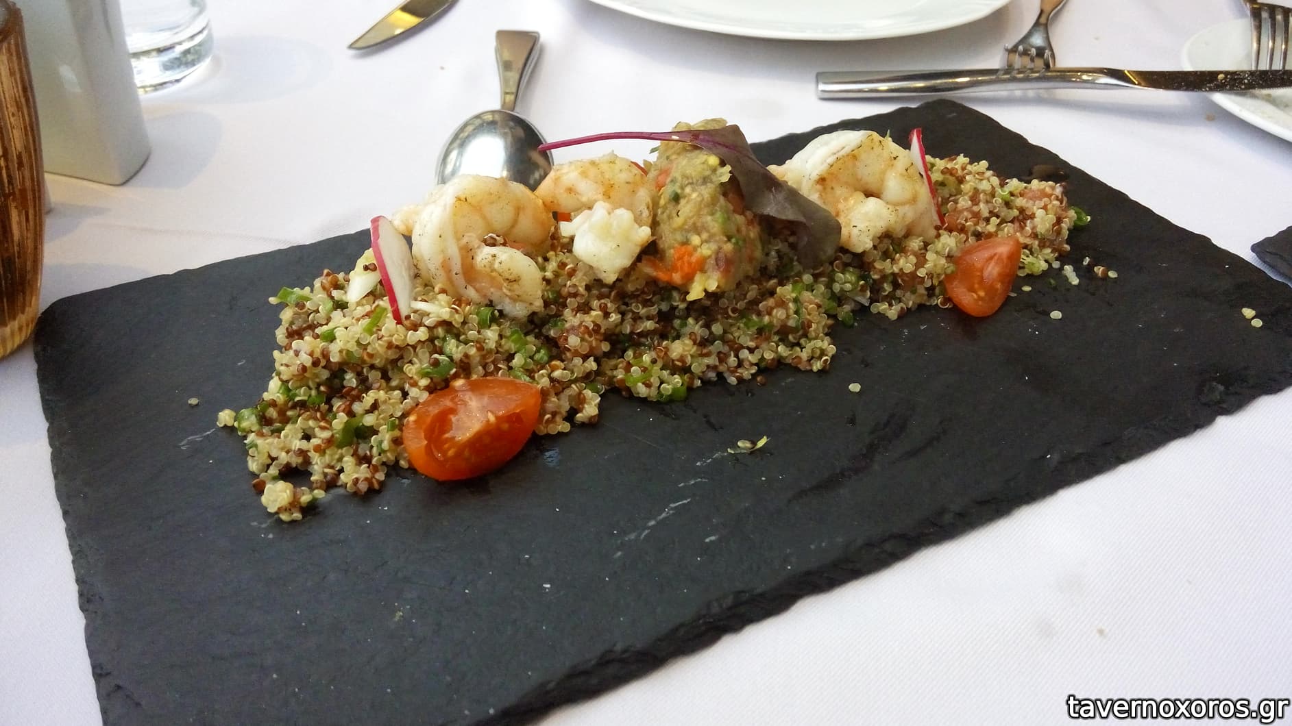 Σαλάτα Κινόα με ψητές γαρίδες, πολύ δροσερή όχι όμως κάτι το ιδιαίτερο.