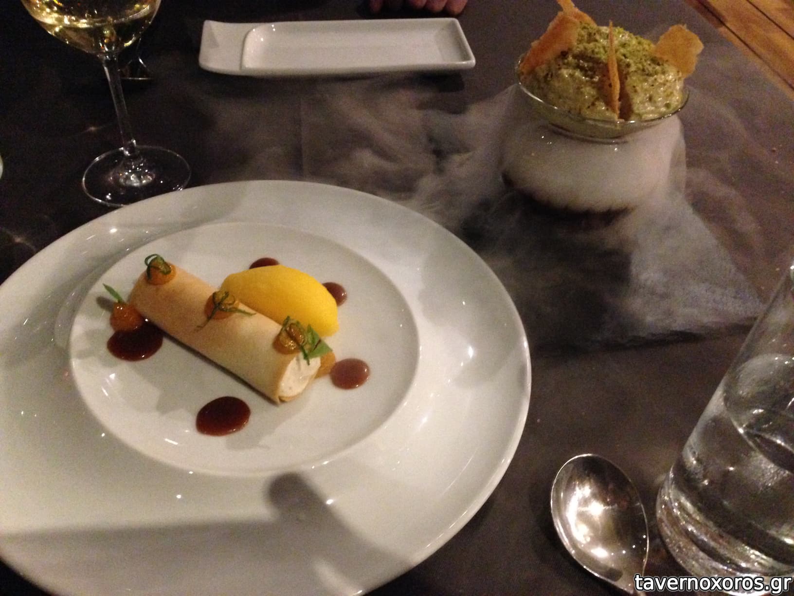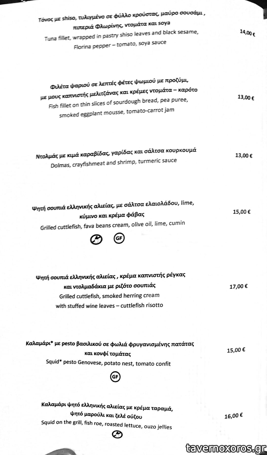 στα του φαγητου: λαυρακι καρπατσιο καλο, τσιπουρα με φρυγανισμενο ψωμι και 4 σαλτσες καλο, κριθαροτο γαριδας τελειο, και σφυριδα με τσοριθο και λαδι αρωματισμενο με σοκολατα γευστικη εμπειρια. αυτα συν 1 μπουκαλι κρασι γυρω στο 100αρι.