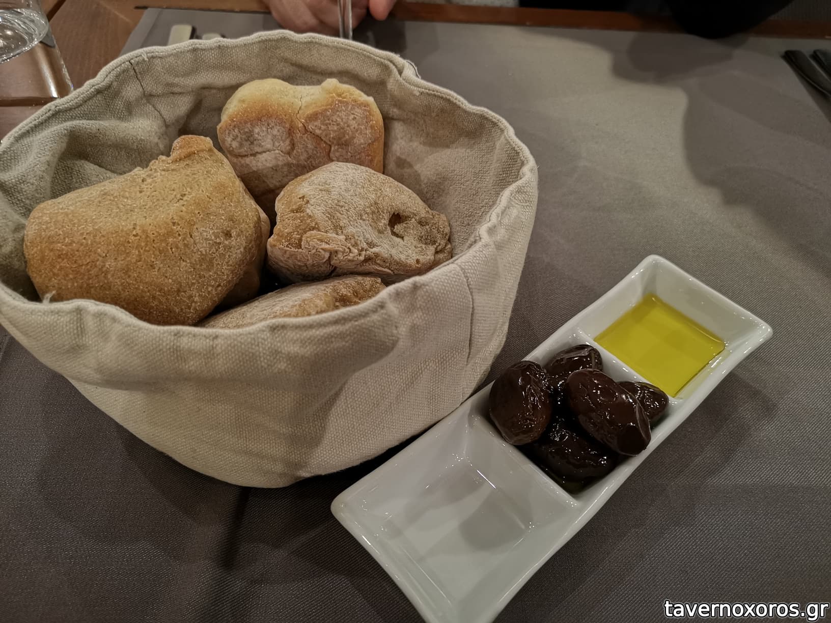 Καλωσόρισμα με ψωμάκι και εξαιρετικό ελαιόλαδο.