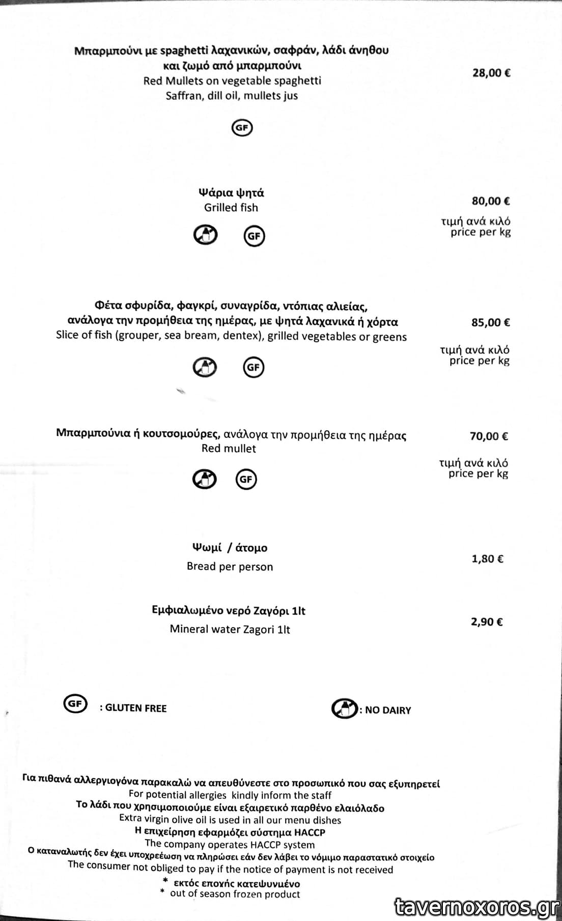 A la carte μενου διαφορετικο μεσημερι κ βραδυ με αρκετα κοινα πιατα. To βραδυ είχε κ ενα μενου προταση του σεφ που δε μας αρεσε οποτε ειπαμε να παρουμε να δοκιμασουμε διαφορα στη μεση.