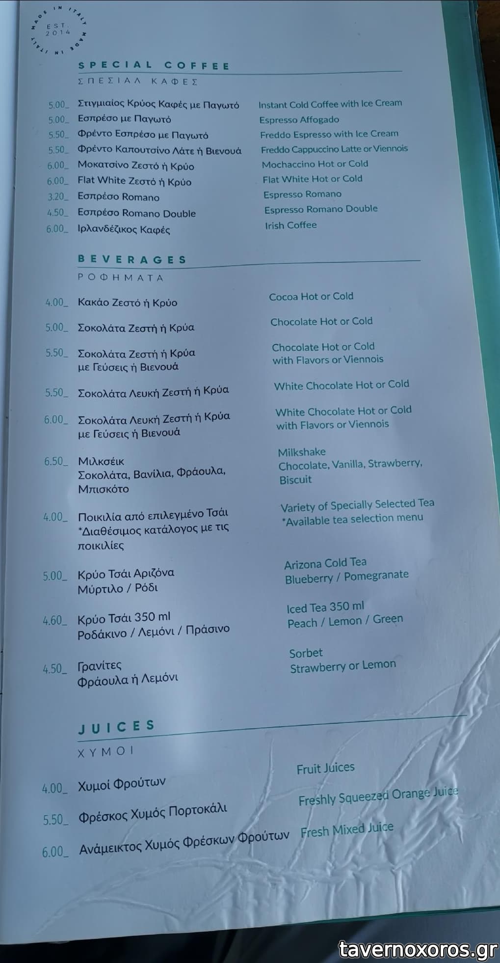 - Οι τιμές αρκετά φευγάτες για την εποχή - €4 ο καφές (φραπές, φρέντο κλπ)