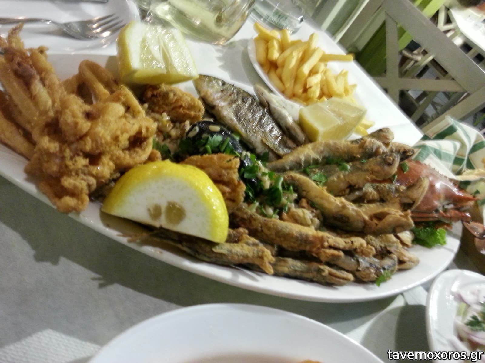 Πρώτη φορά βλέπω και καβούρι (ευχάριστη έκπληξη) σε μενού των 17 ευρώ(πιάτο από φώτο+σαλάτα+μισό λίτρο κρασί), και 2 άτομα σκάσαμε με ψάρι.