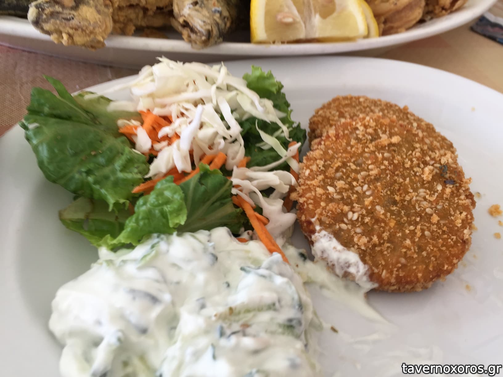 -Τζατζίκι χειροποίητο που συνοδεύεται με πιτούλα. Ωραίο αν και θα το ήθελα πολύ πιο σκορδάτο.
