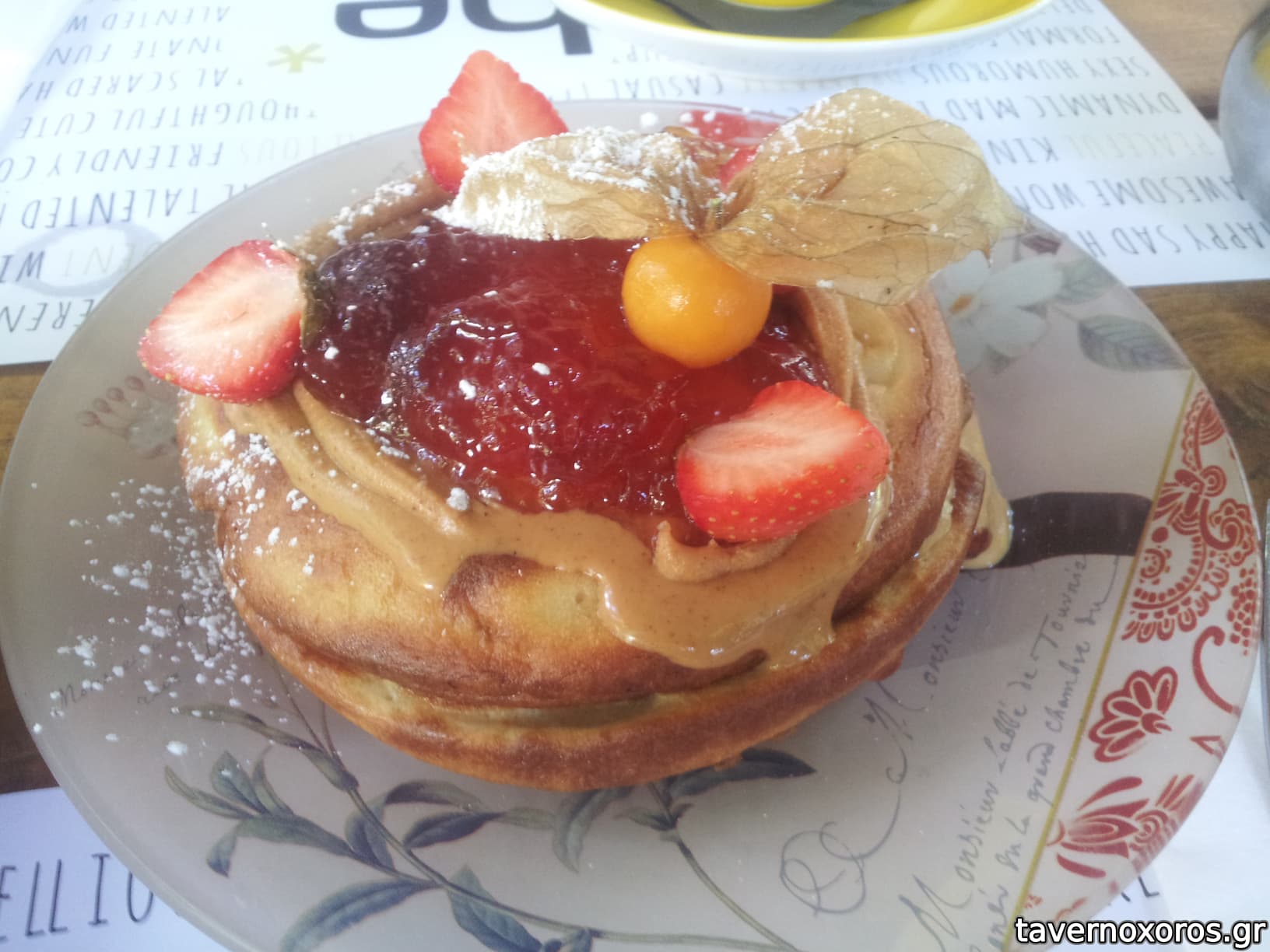 Pancakes με φυστικοβούτυρο και μαρμελάδα ντομάτα