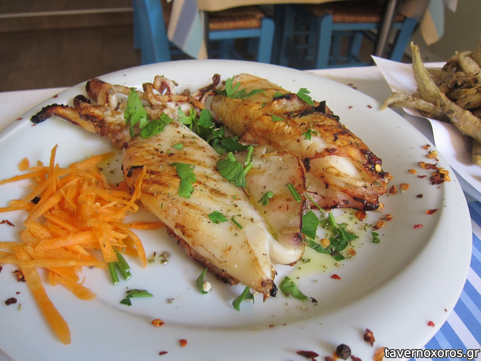 1 καλαμαρακια τηγανιτα. Τρυφερα απο μεσα, τραγανα απ εξω. Ελαφρια και νοστιμμα.