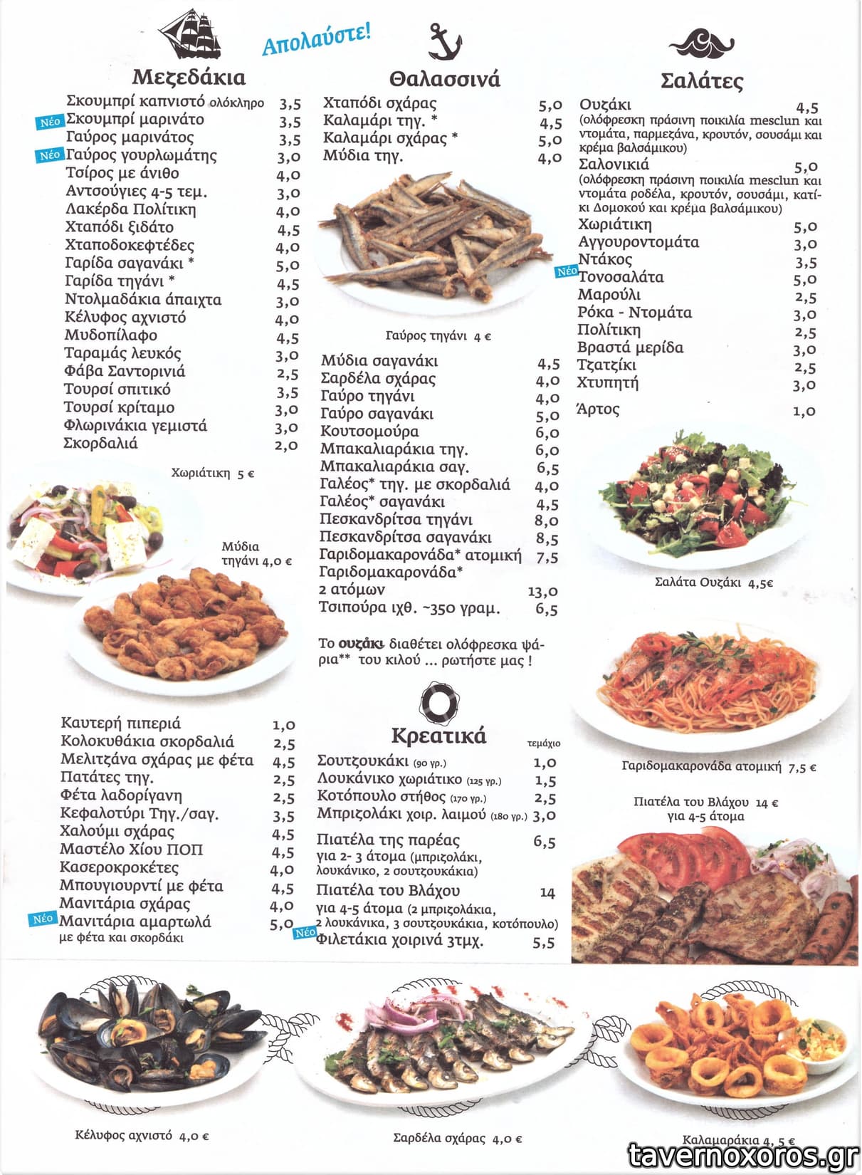 Ενα πολυ καλο στοιχειο του καταλογου, ειναι πως πολλα πιατα χωριζονται σε "