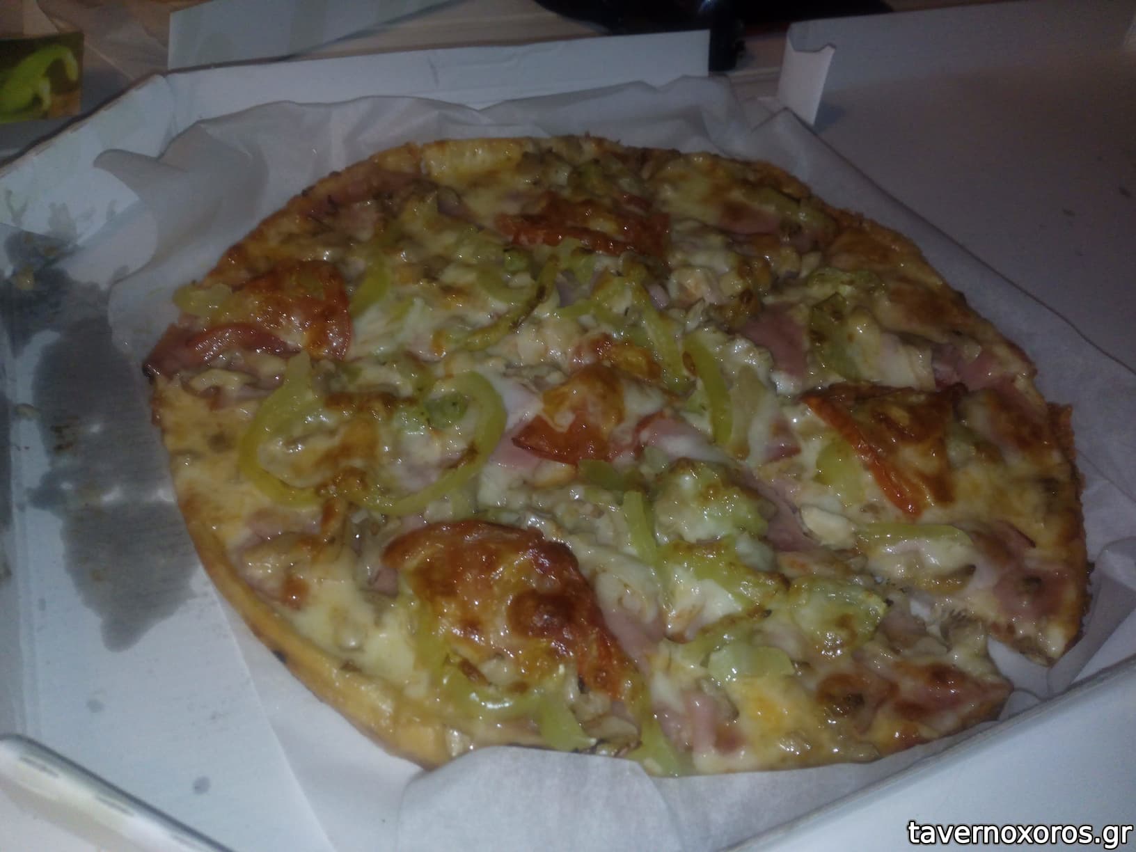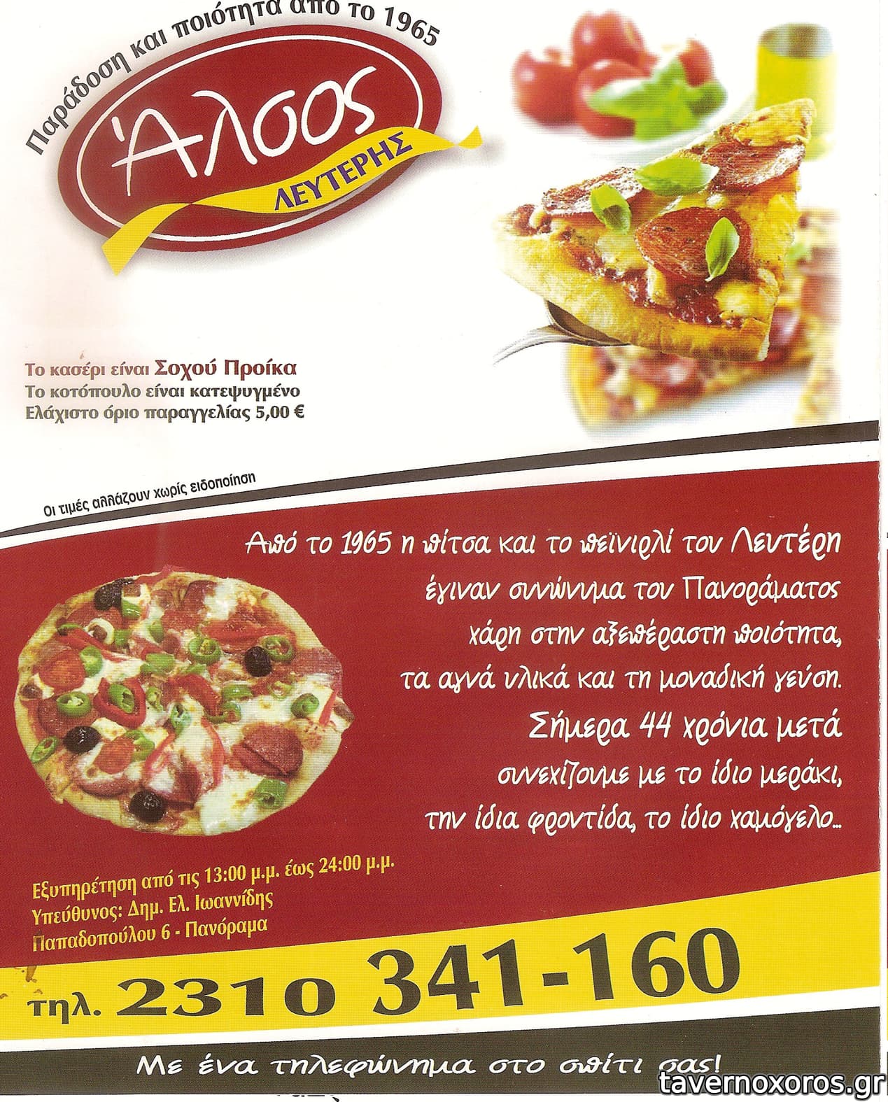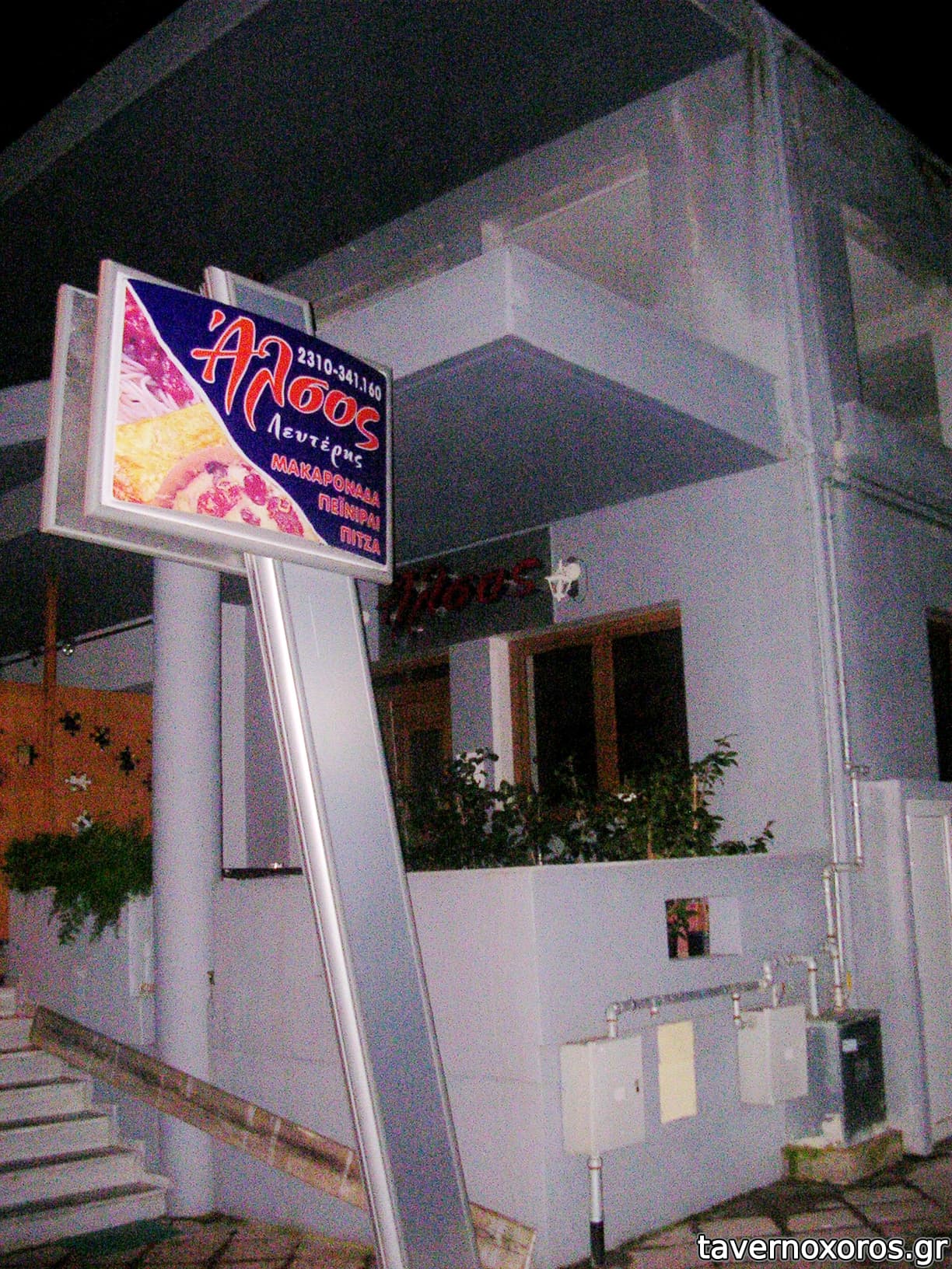 Απ' έξω γράφει πίτσα, μακαρονάδα και πεϊνιρλί. Δεν έχει καθίσματα, είναι μόνο για delivery. Το έχει ο Δημήτριος Ιωαννίδης, γιος του παλιού γνωστού Λευτέρη που είχε το