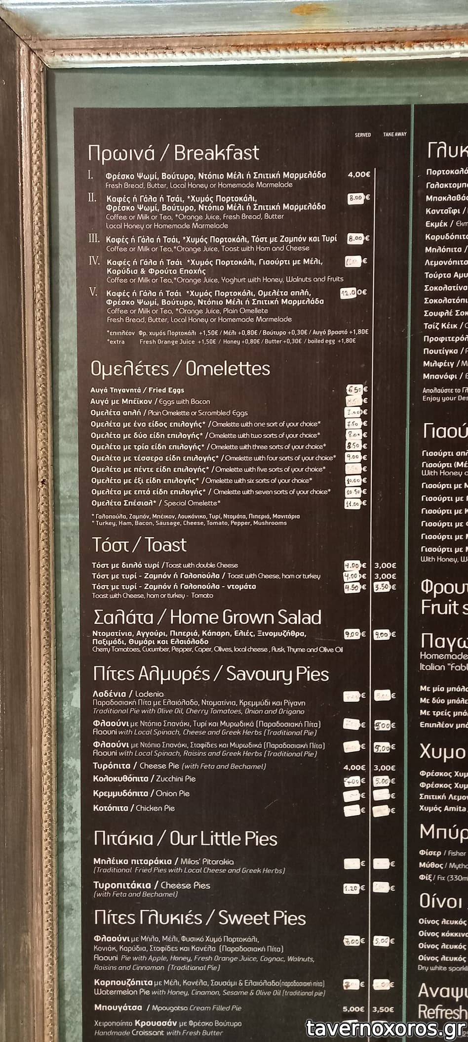 Με τα πολλά τα πήραμε και όλα ήταν νόστιμα αλλά οι τιμές ήταν εξωφρενικές (7€ αν καθόσουν να το φας εκεί) και αυτό το παραμυθάκι με τα ντόπια προϊόντα στις Κυκλάδες που ταΐζουν κάθε χρόνο 4 εκατομμύρια τουρίστες αλλά με ντόπια υλικά πραγματικά μπορούν να το πουν στους ξένους αλλά είναι εξοργιστικό να σε κοροϊδεύουν μες τα μούτρα σου.