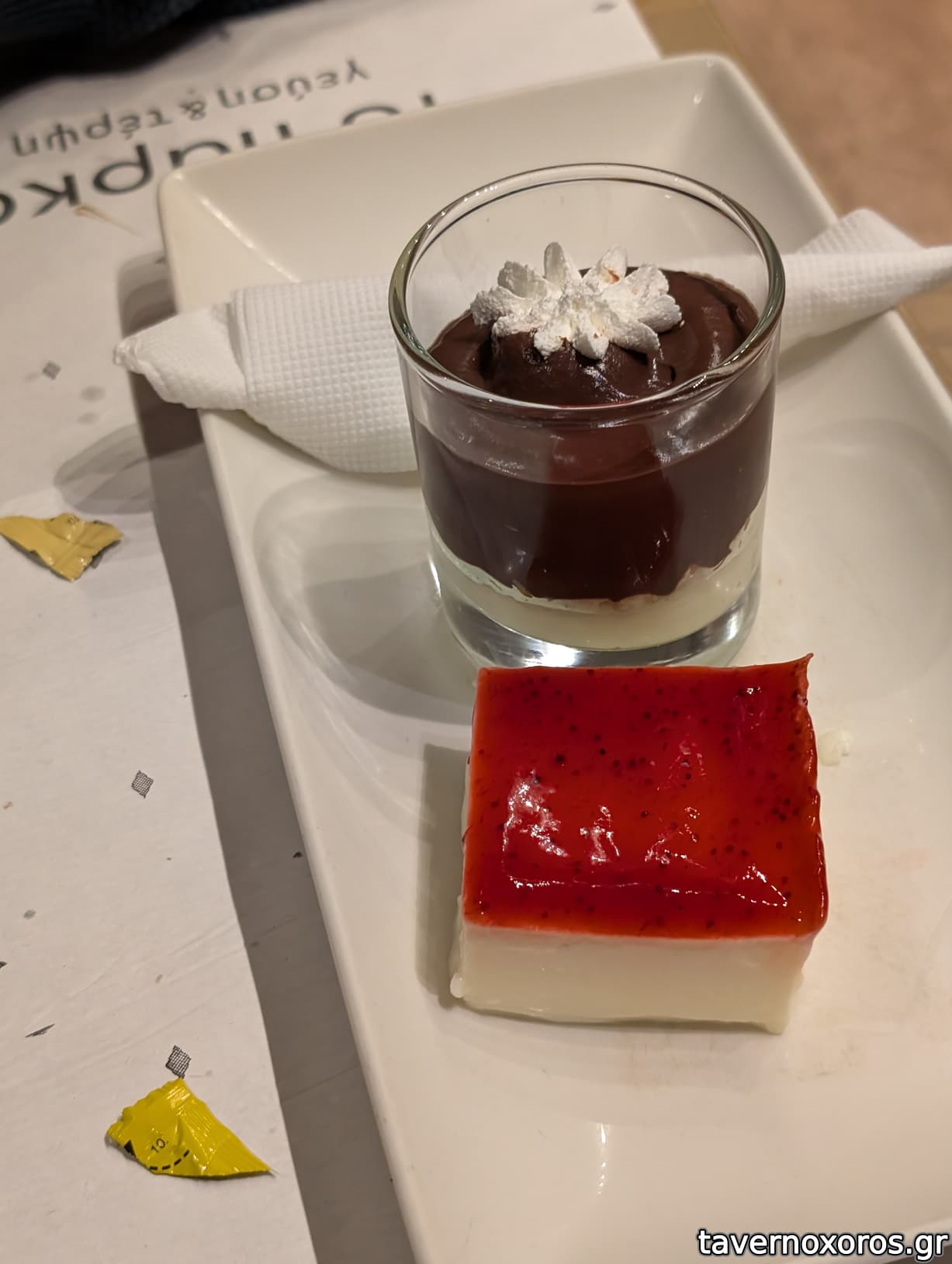 κερασμένο γλυκό πανακότα (κομπλέ), προφιτερόλ(πολύ καλό)