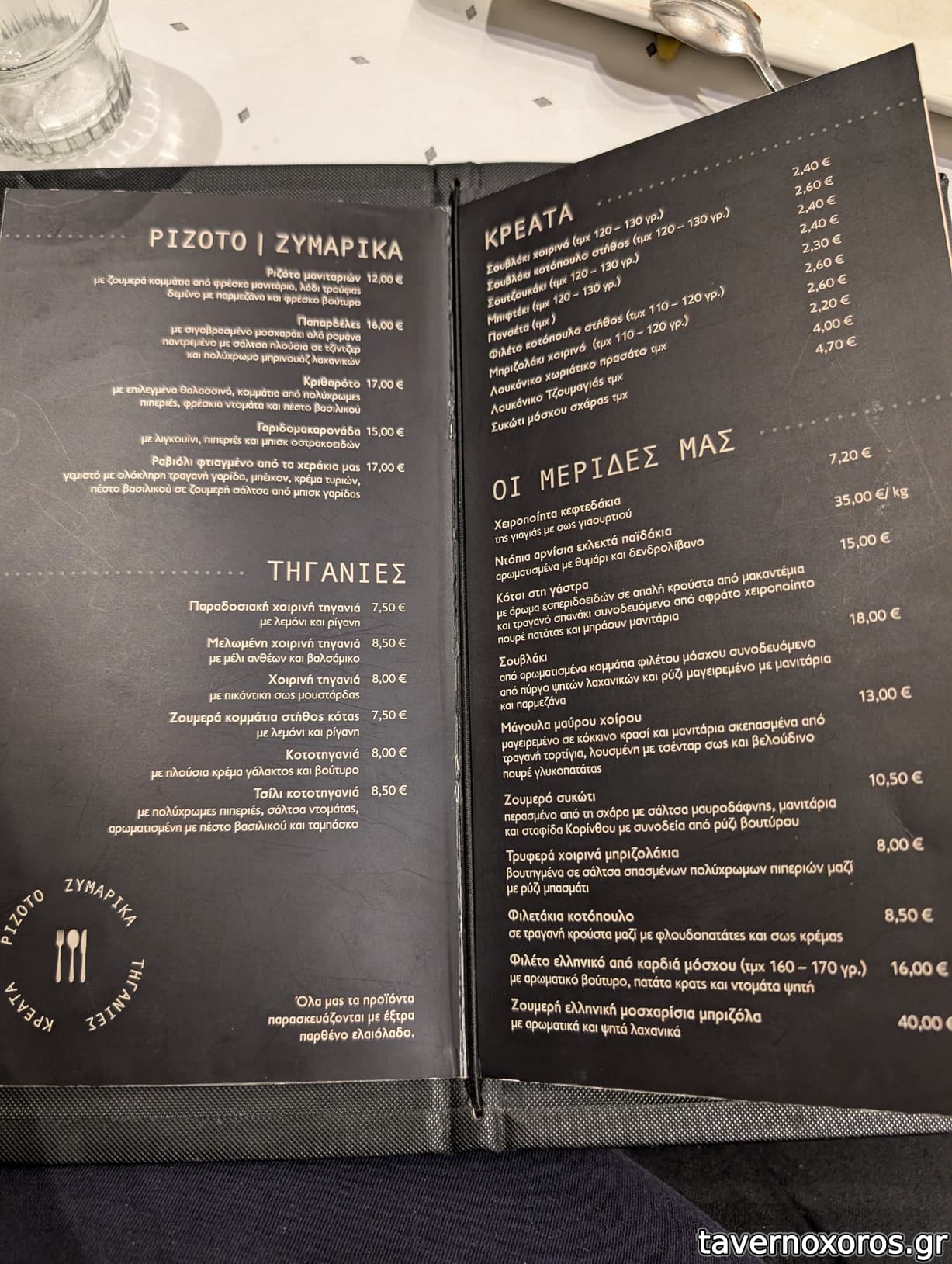 Τα παραπάνω με 4 τσίπουρο χωρίς, 5 άτομα, 24€ το κεφάλι.