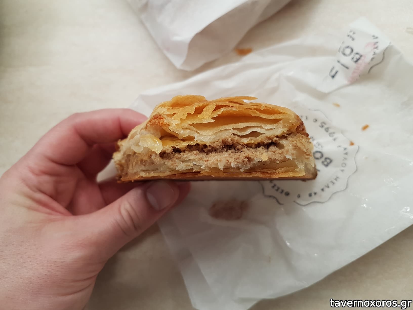 Όπως λέει ο patatas, εάν ξέρεις από καλές σπιτικές πίτες - θα καταλάβεις ότι δεν είναι κάτι το ιδιαίτερο. Συμφωνώ και για το θριματισμενο φύλλο. Επίσης να προσθέσω ότι παίζει τρελή καούρα στο στομάχι μετά από ένα μόνο κομμάτι που σημαίνει ότι δεν παίζει σωστό βούτυρο / ελαιόλαδο .