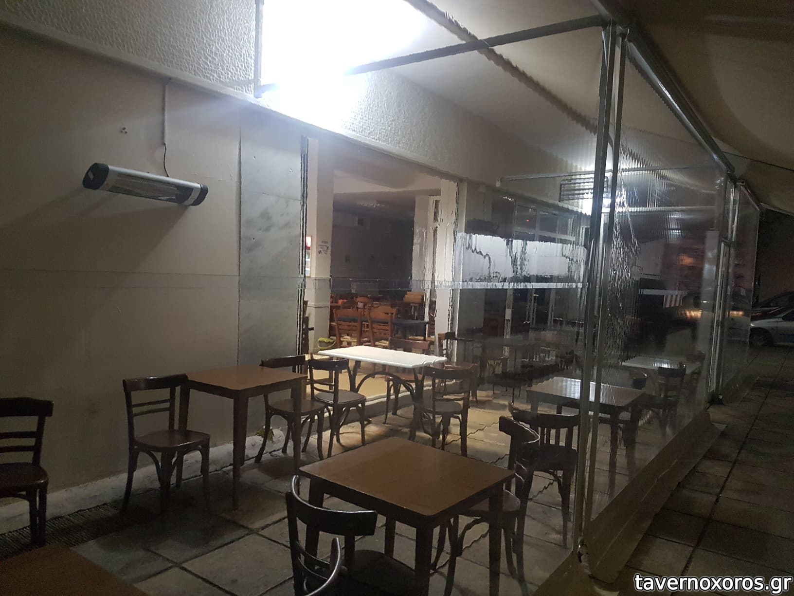 Για καλή μας τύχη βρήκαμε. Το μαγαζί έχει τραπέζια μέσα και έξω. Εξωτερικά μας άρεσε πολύ, ένας απλός χώρος με τραπέζια και πλαστικά που προστατεύουν από το κρύο. Θυμίζει αυλή που βρίσκεται μεταξύ πολυκατοικιών Πρόκειται για καφενείο με μεζέδες, σε στενάκι που δύσκολα το πιάνει μάτι. Οπότε, το ότι είναι συχνά γεμάτο μας δημιούργησε αρκετά υψηλές προσδοκίες.
