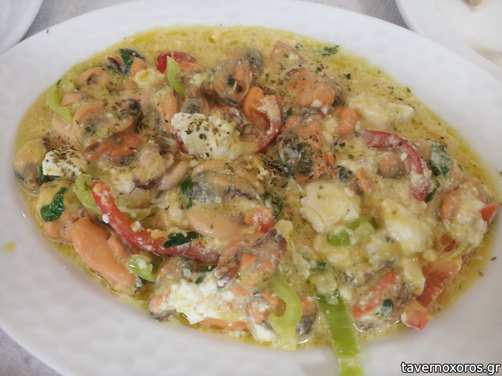 Μύδια σαγανάκι (με ένα τυρί σαπουνέ, κάτω του μετρίου)