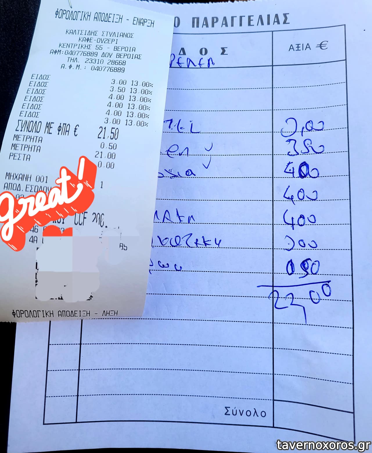 Λογαριασμός-Απόδειξη, Dine-in, Μάρτιος 2022