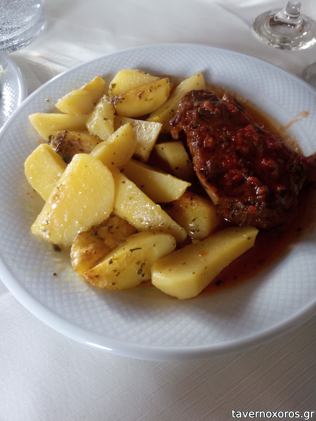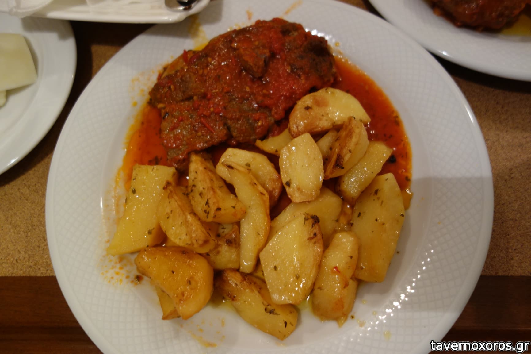 Μοσχαράκι κοκκινιστό με λεμονάτες πατάτες (πολύ καλό)