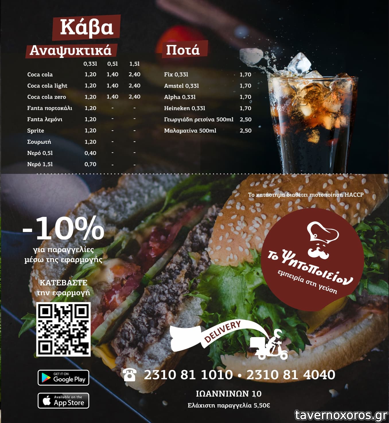 ΥΓ. έχουν πλέον αναχθεί σε corporation του ντελίβερι, δηλ. σχεδόν με όλες τις πλατφόρμες, μαζική παραγωγή κτλ. Τέλος έχουν δικό τους app, όπου οι παραγγελίες έχουν όλες -10% έκπτωση.