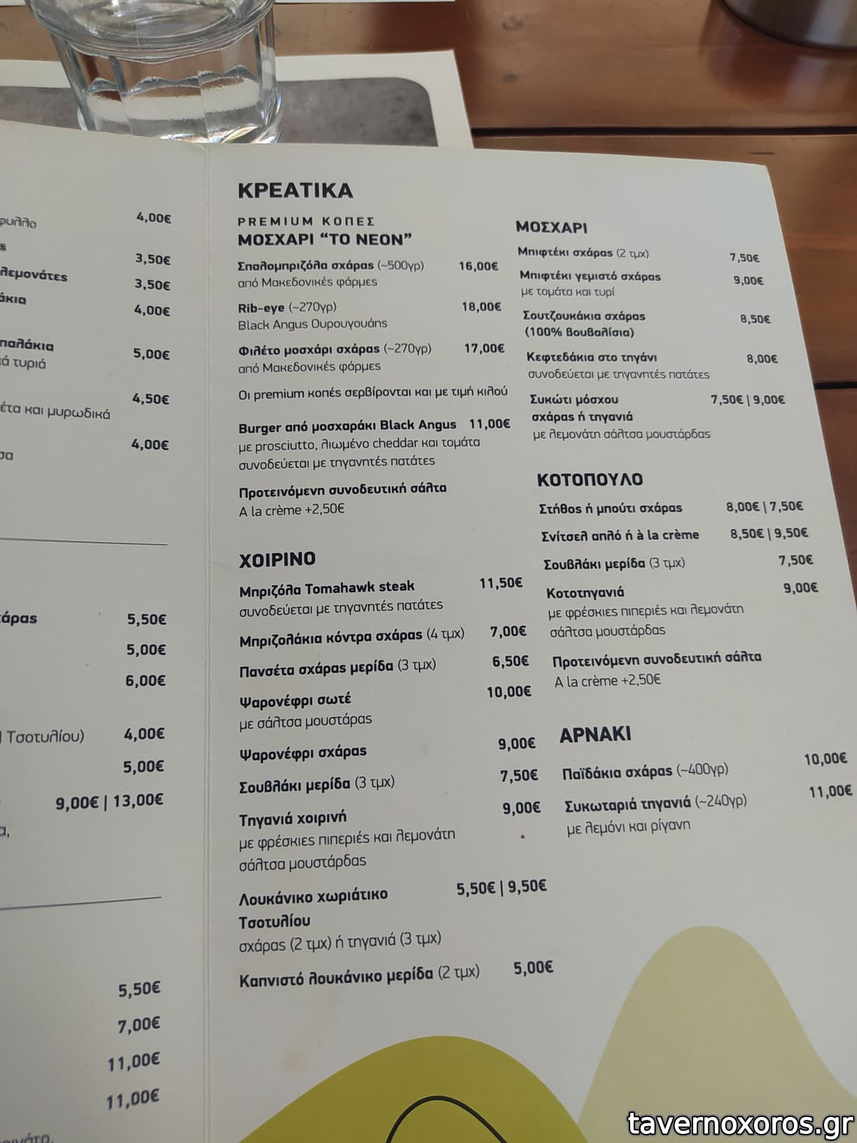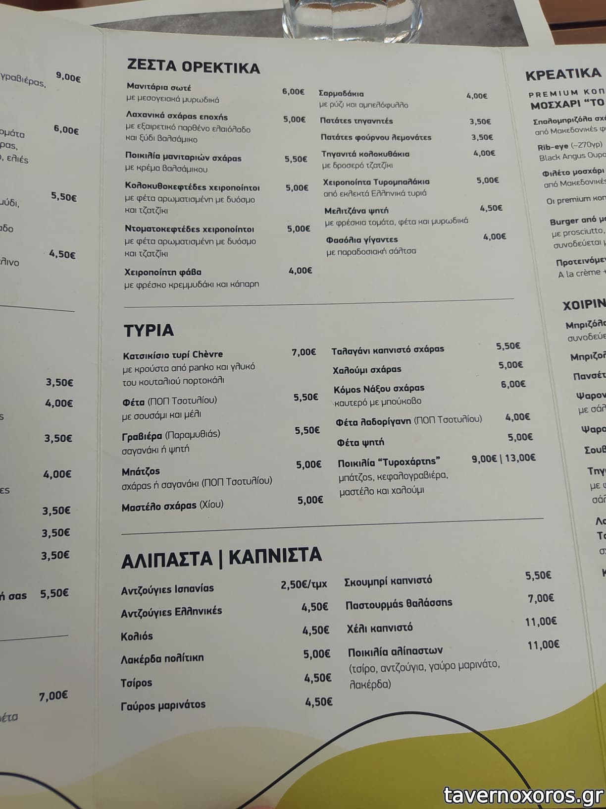 3 κρεατικά, 1 πατάτες, 1 αγγουρ/μάτα, 1 κοπανιστή, 1/2 κρασί & 1 αναψυκτικό 36 ευρώ.