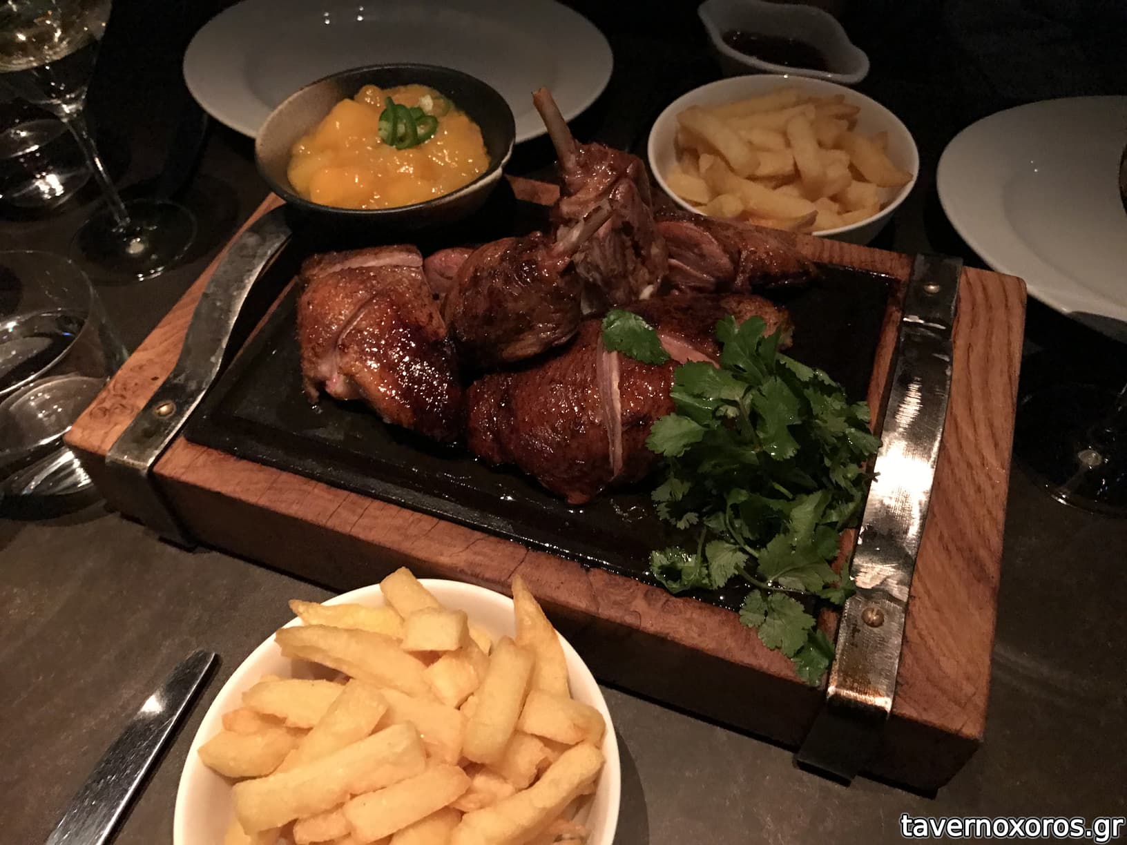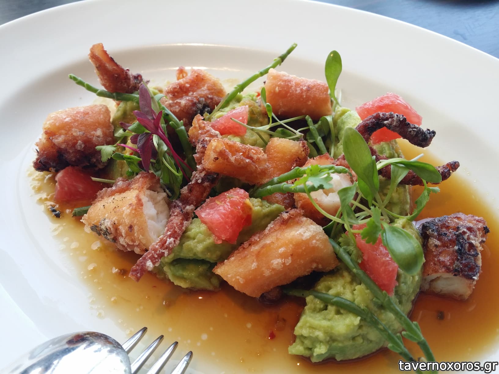 Το φαγητό του ήταν καλό χωρίς να εκπλήσσει βέβαια. Από ορεκτικά χτένια καλοψημένα και με καλή sauce από φυστίκι&tamarind, το τηγανιτό χταπόδι ήταν ενδιαφέρον με τον συνδυασμό grapefruit&avocado. Για κυρίως δοκίμασα την πάπια φούρνου τους με μένγο που ήταν και καλή σε ποσότητα αλλά και νόστημη!