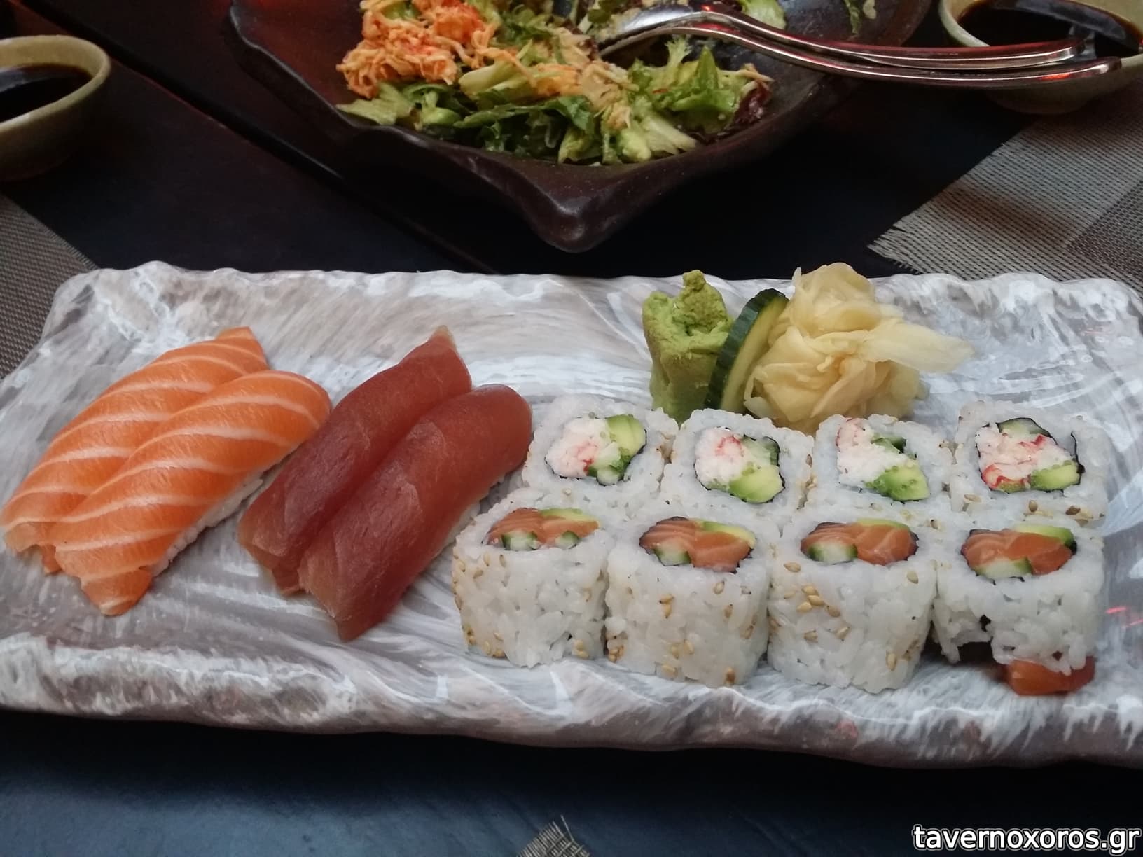 Όλα τα πιάτα ήταν πεντανόστημα: η καβουροσαλάτα με μπόλικο καβούρι και καλό dressing, το sushi mix πολύ σωστό με το ρύζι να κολλάει, αγριο σολομό που πήρα ήταν πολύ καλός με απαλή wasabi μαγιονέζα, ο πικάντικος τόνος και αυτός πολύ καλός και επίσης πήραμε και έναν μάυρο μπακαλιάρο με σωταρισμένο σπανάκι που ήταν καλομαγειρεμένος και γενναιόδωρη μερίδα.
