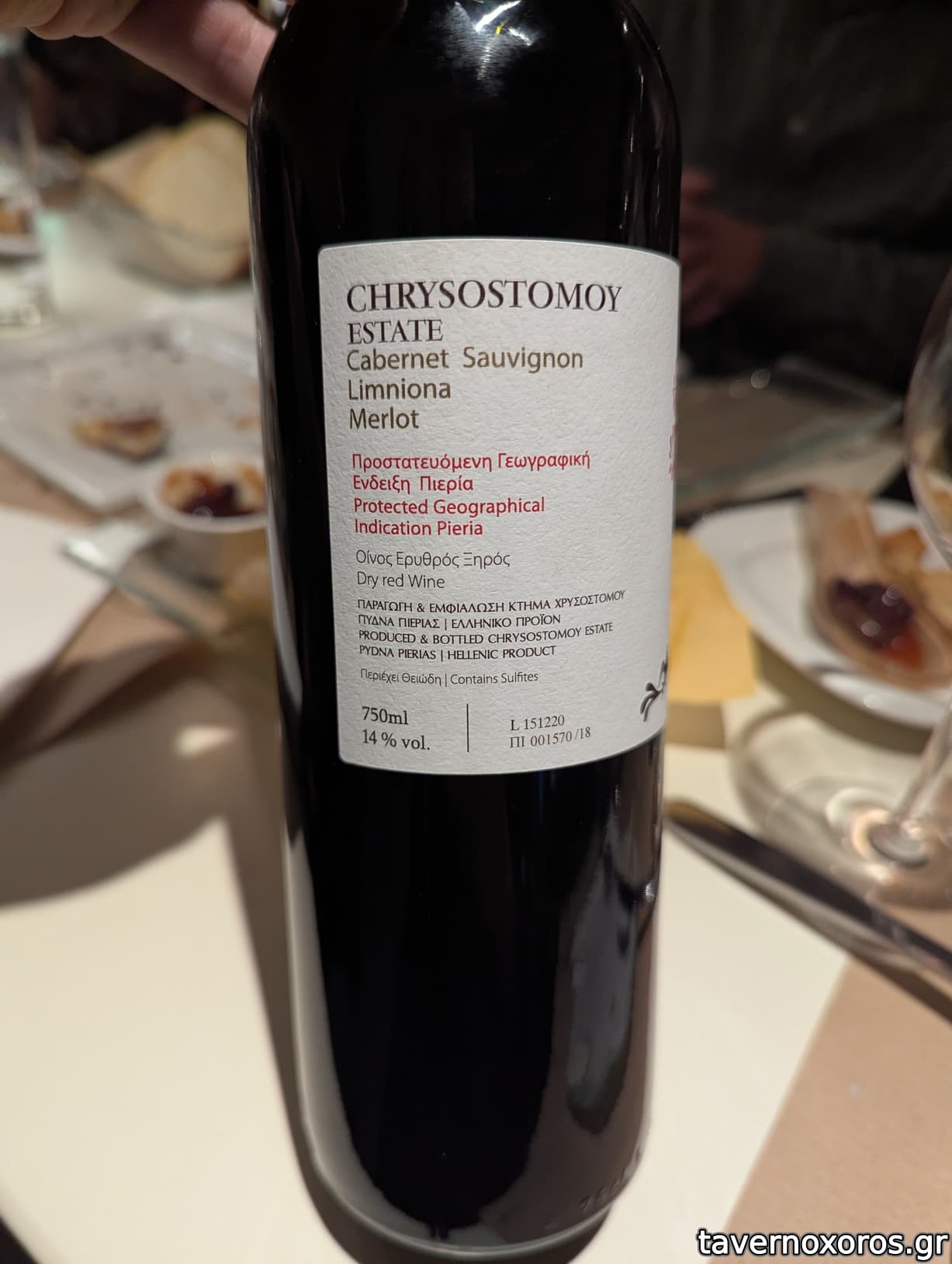 Ερυθρό 2018 - Cabernet Sauvignon/Λημνιώνα/Merlot - [url=https://chrisostomou.gr/]Κτήμα Χρυσοστόμου[/url] - Πύδνα Πιερίας (καλό, μου άρεσε)