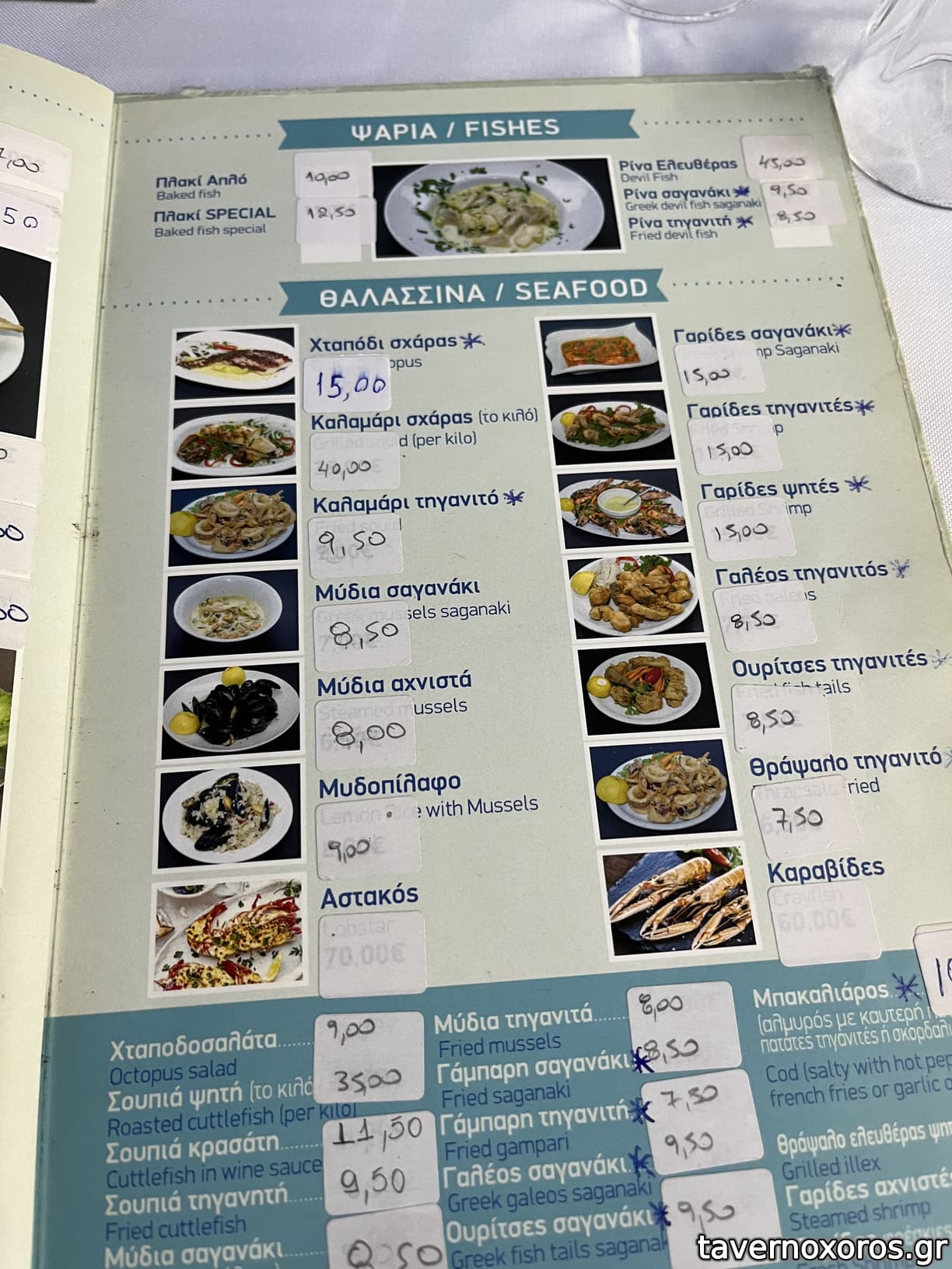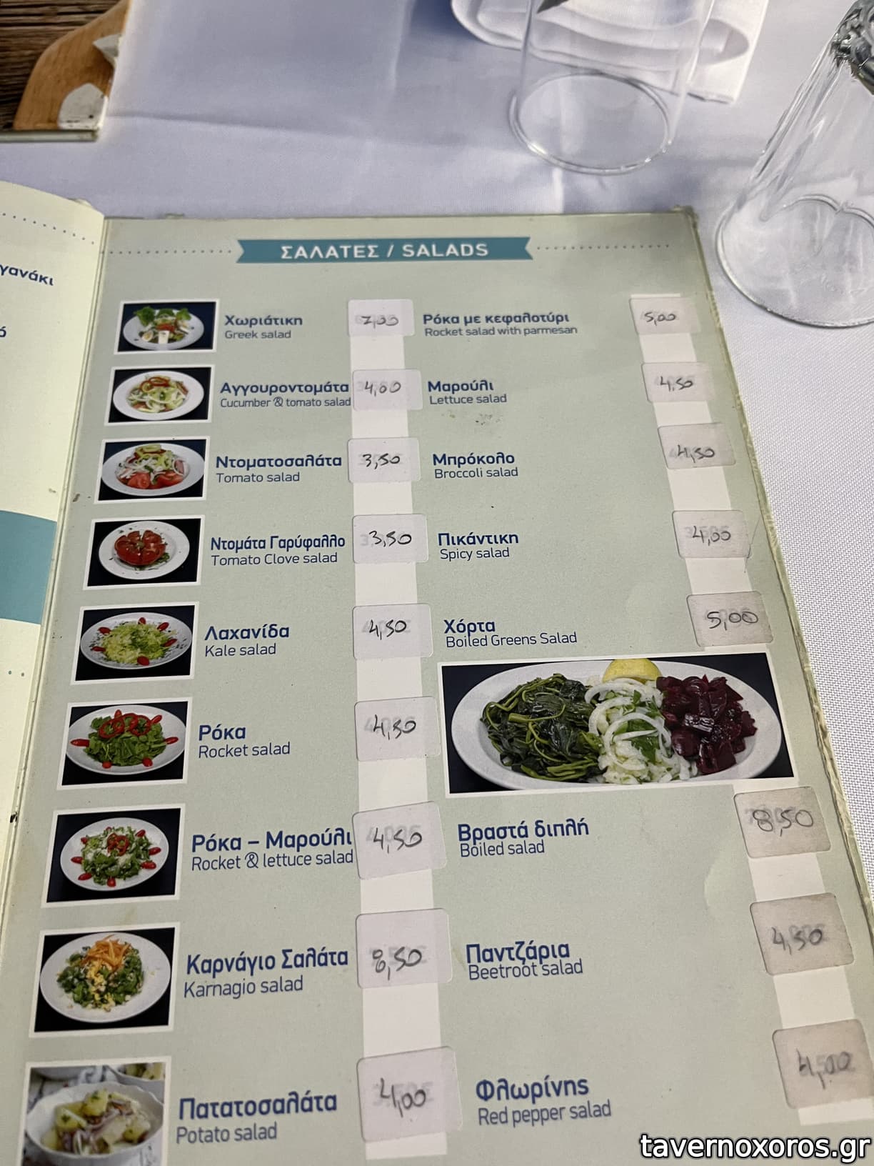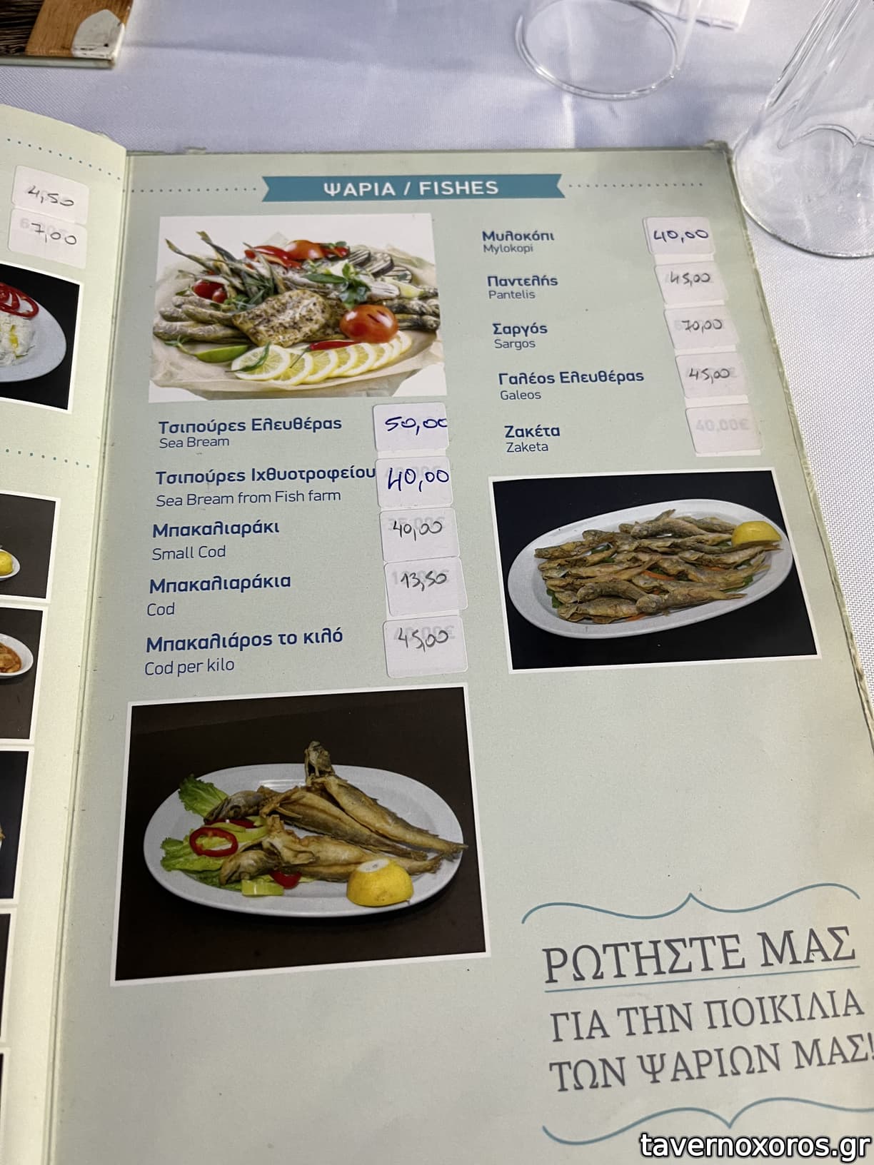 Δοκιμάσαμε αγγουροντομάτα (οκ), κολοκυθάκια τηγανητά x2 (μια χαρά, έπαιρναν λίγο στράγγισμα παραπάνω), πατάτες τηγανητές x2 (οκ), τζατζίκι (οκ, λίγο παραπάνω αλμυρό για τα γούστα μου), σκουμπρί καπνιστό (μια χαρά), χταπόδι ξυδάτο (καλό, λουκούμι), καλαμαράκια τηγανητά (μια χαρά), γαρίδες σαγανάκι (πολύ καλές, υπέροχα δεμένη η σάλτσα).