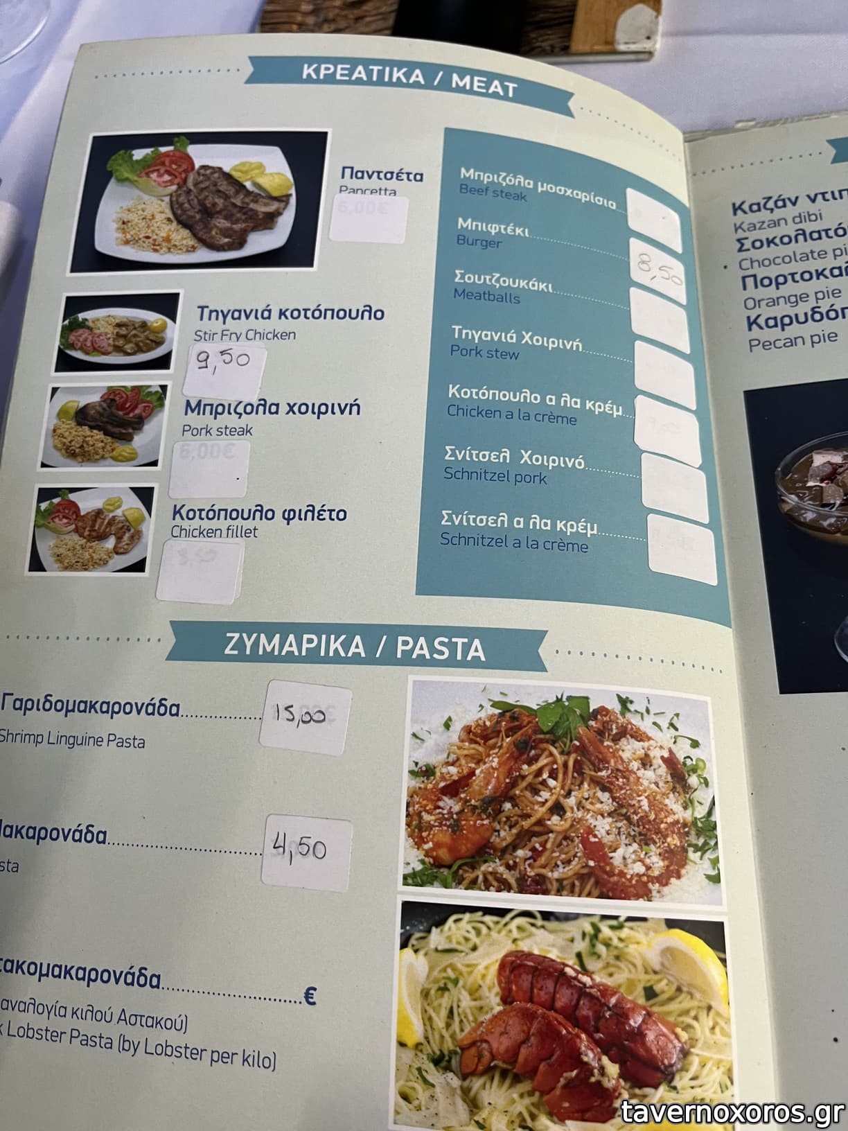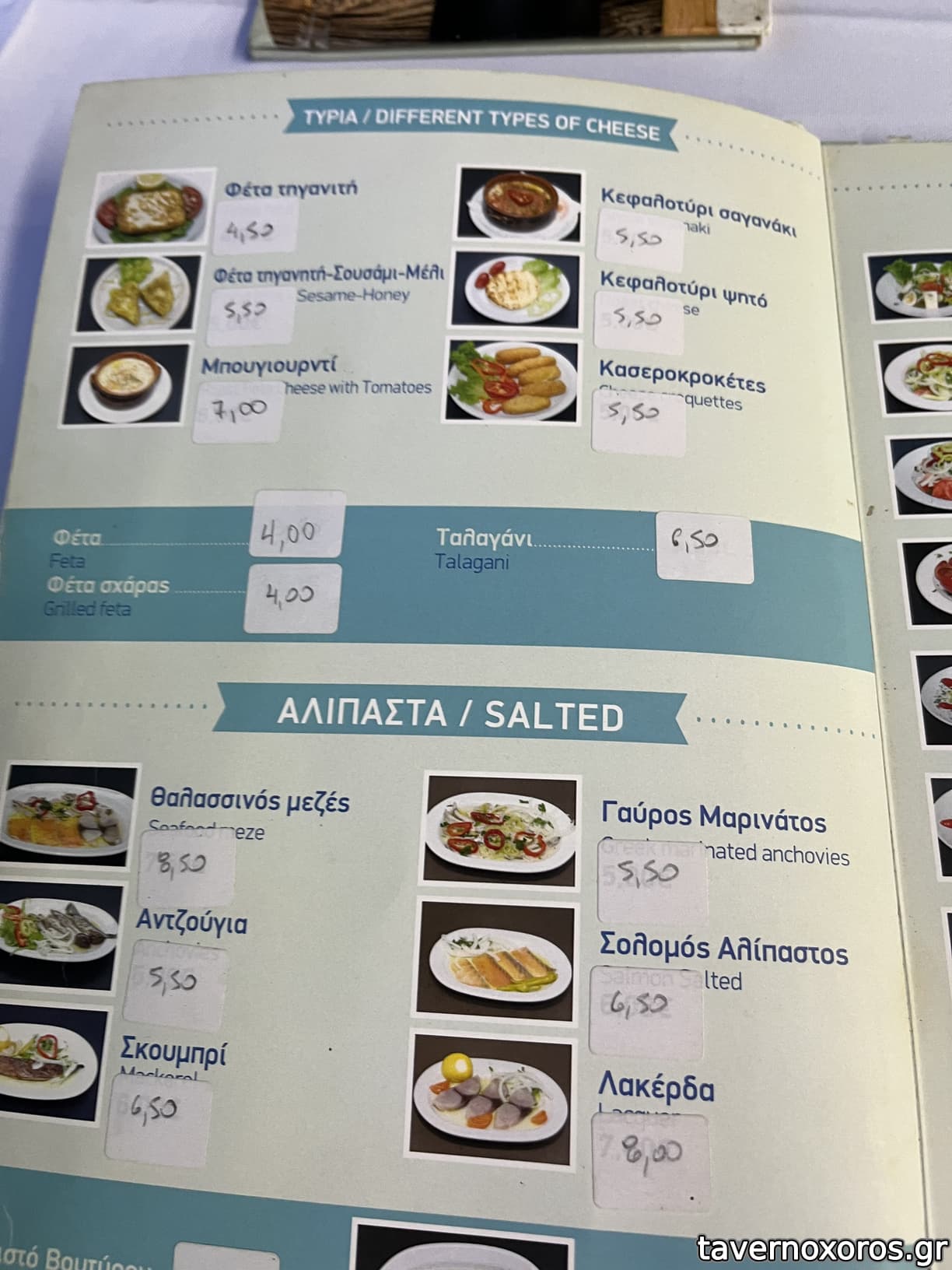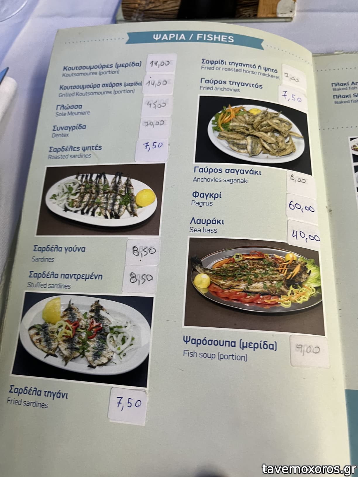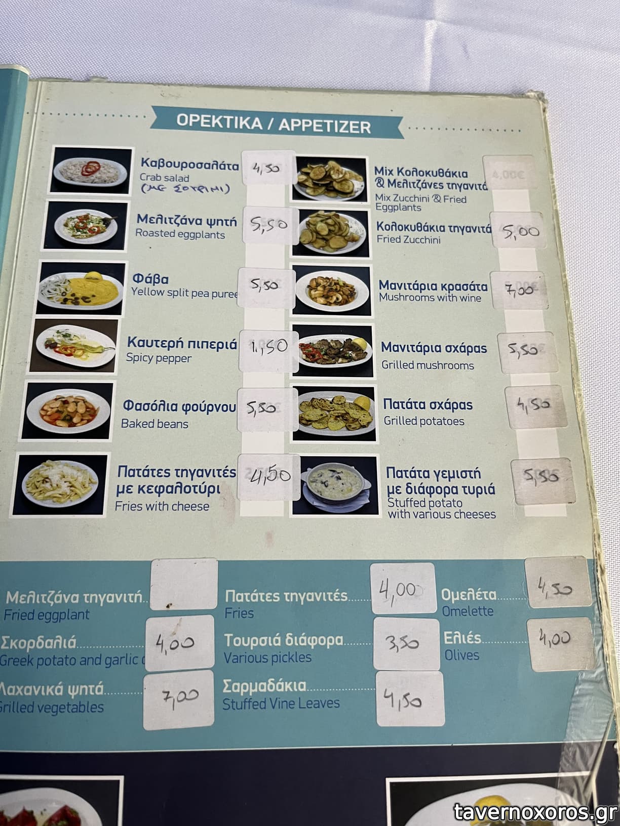 Δοκιμάσαμε αγγουροντομάτα (οκ), κολοκυθάκια τηγανητά x2 (μια χαρά, έπαιρναν λίγο στράγγισμα παραπάνω), πατάτες τηγανητές x2 (οκ), τζατζίκι (οκ, λίγο παραπάνω αλμυρό για τα γούστα μου), σκουμπρί καπνιστό (μια χαρά), χταπόδι ξυδάτο (καλό, λουκούμι), καλαμαράκια τηγανητά (μια χαρά), γαρίδες σαγανάκι (πολύ καλές, υπέροχα δεμένη η σάλτσα).