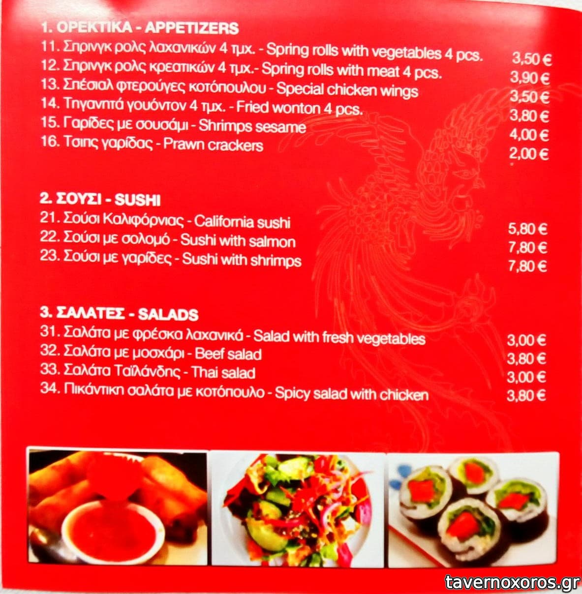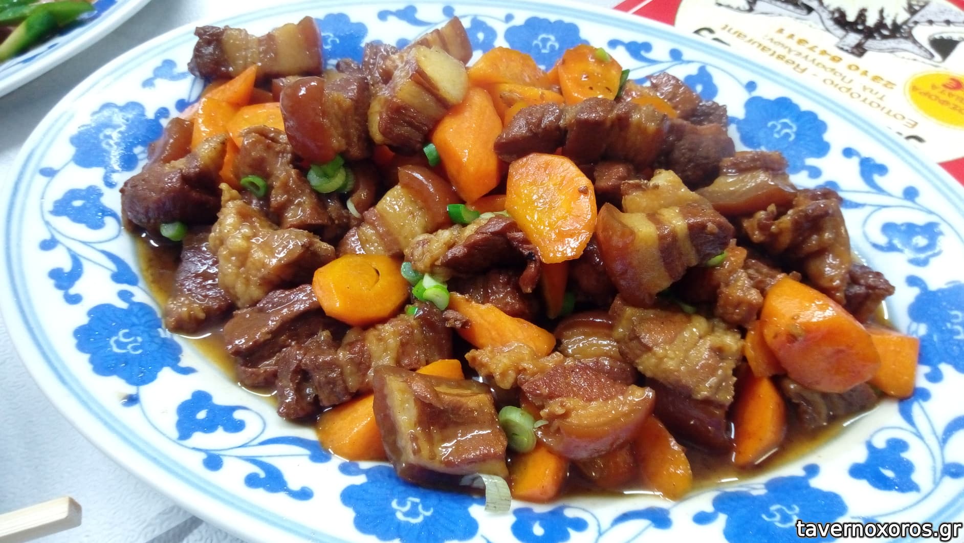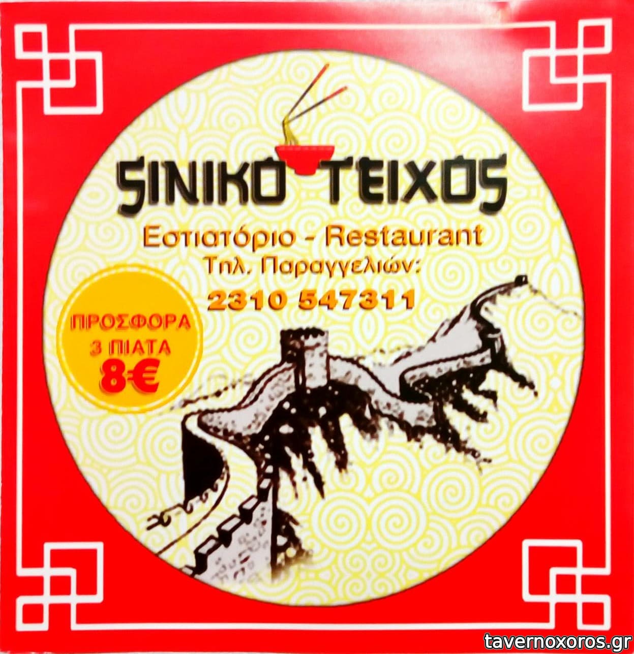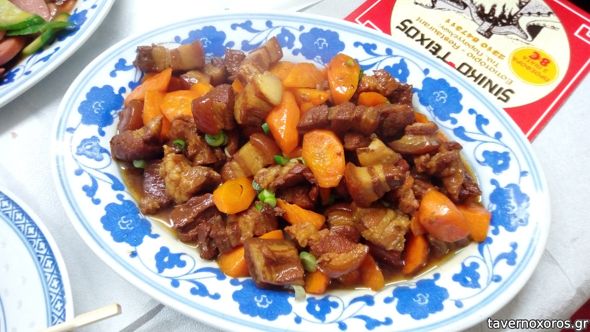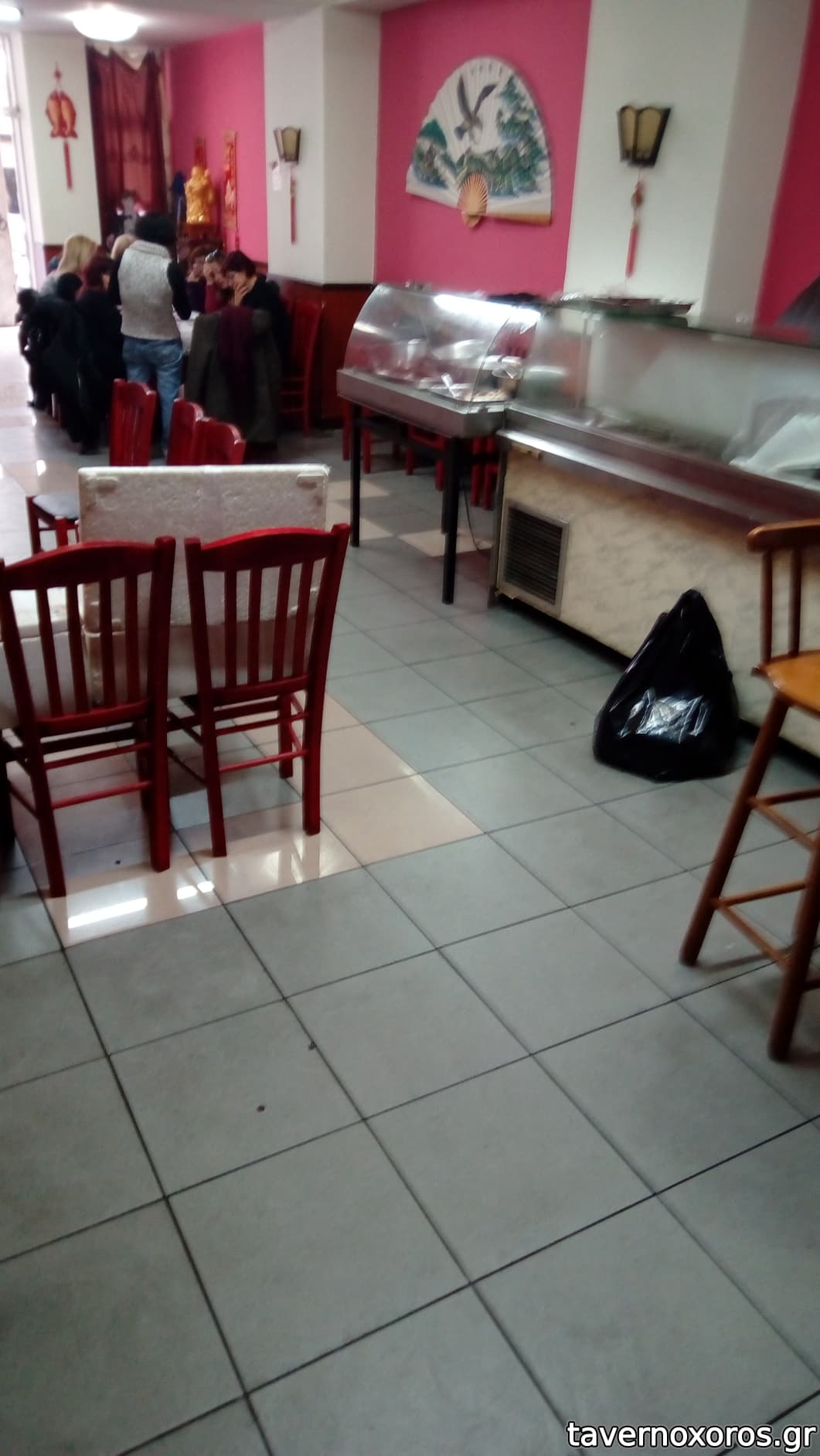 πήγαμε πριν λίγες βδομάδες, παρασκευή απόγευμα, 3 νοματαίοι. Φυσικά ήμασταν οι μόνοι. Το μαγαζί είναι ένα κινέζικο μαγερειό κοντά στην τσαινατάουν (ναι, έχει η πόλη μας- δεν το ξέρατε; ) και φυσικά κάνει και ντελίβερι τα κλασικά κινέζικα πιάτα. Το μεσημέρι λειτουργεί σα μαγειρείο με μπουφέ κι έρχονται κινέζοι που δουλεύουν στα κοντινά μαγαζιά και τρώνε, κάποια πιο hardcore κινέζικα φαγητά σε μπουφέ με 8ε το άτομο, και το βράδυ ή στο ντελίβερι έχει μενού 12ε, αυτό που δοκιμάσαμε κι εμείς: ένα ορεκτικό, ένα πρώτο πιάτο (νουντλς ή ρύζι), ένα κυρίως κι ένα γλυκό/επιδόρπιο+ 1 νερό.