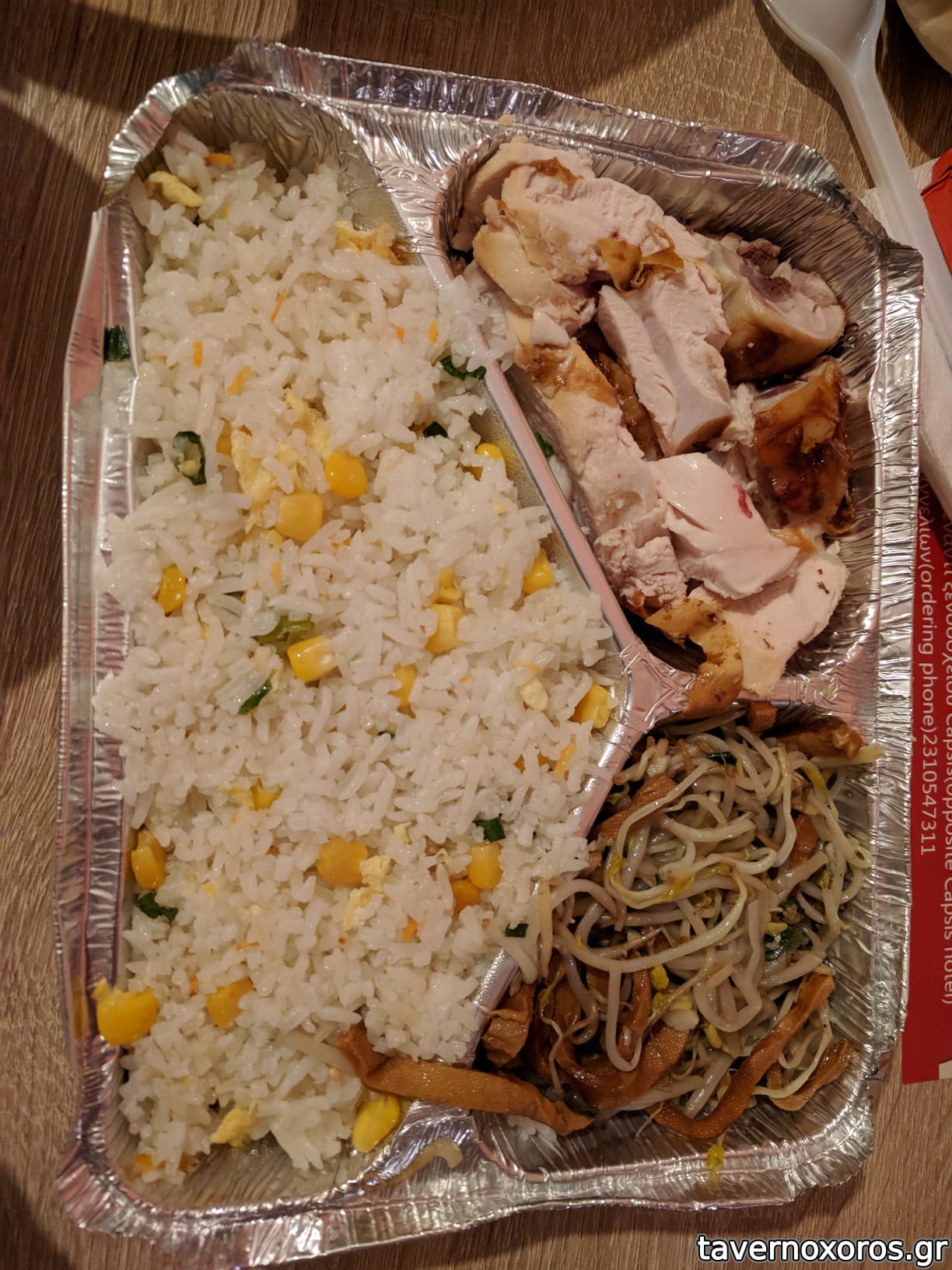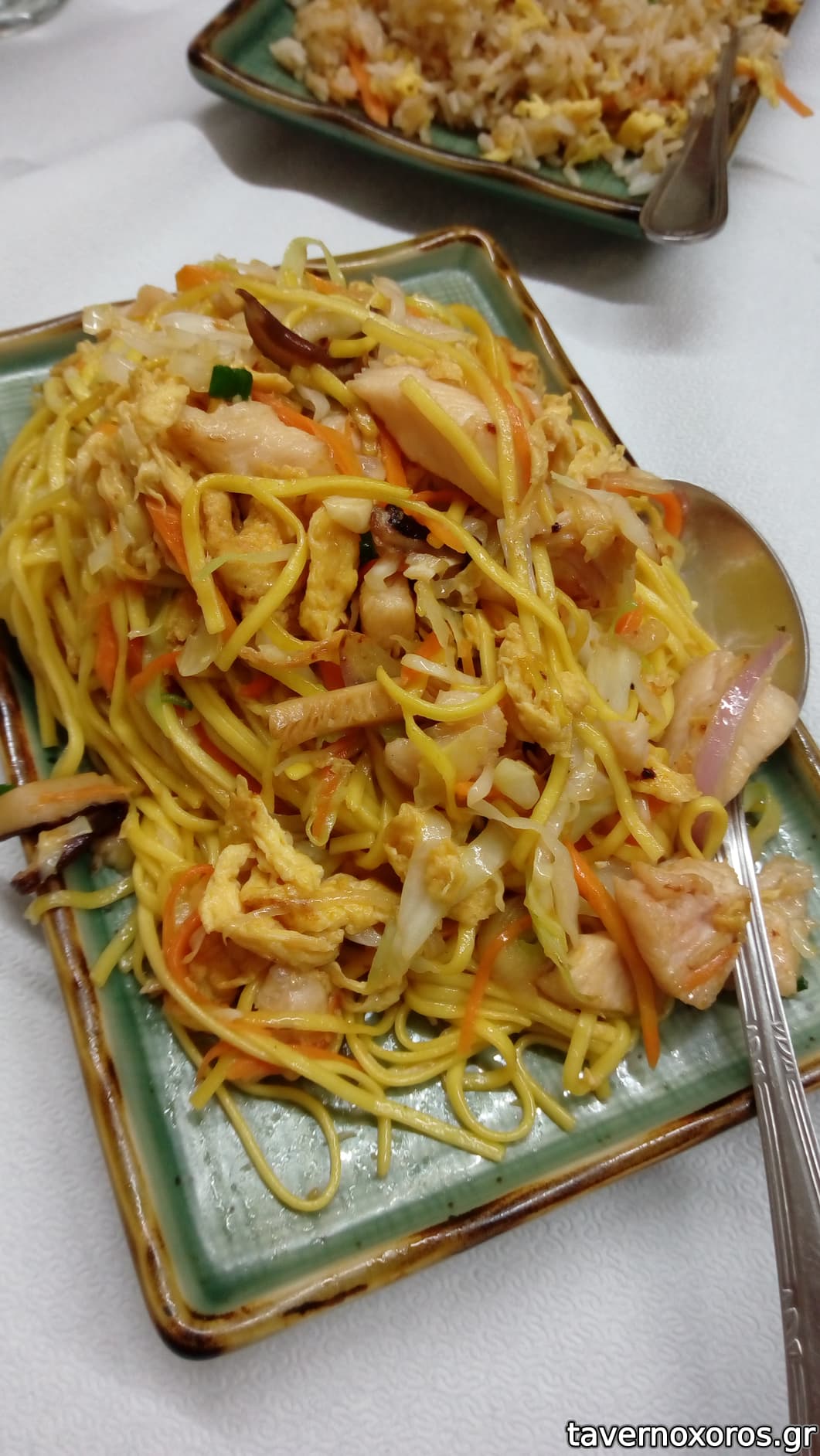 Νουντλς με κοτόπουλο, ρύζι τηγανητό με αβγό (μικρή μερίδα) και ρύζι σπέσιαλ από πρώτο/ζυμαρικό,