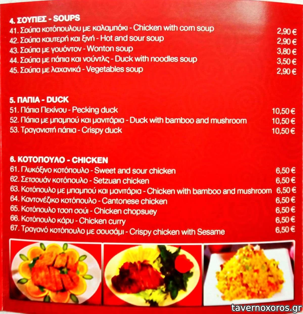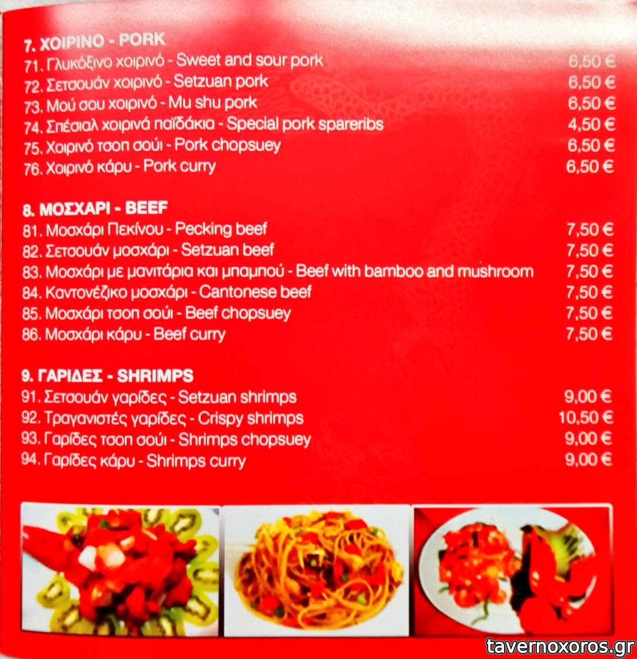 και κυρίως γλυκόξινο χοιρινό (πολύ καλό), κοτόπουλο σετσουάν (επίσης πολύ δυνατό), και σπέσιαλ χοιρινά παϊδάκια (εμένα δε μ'