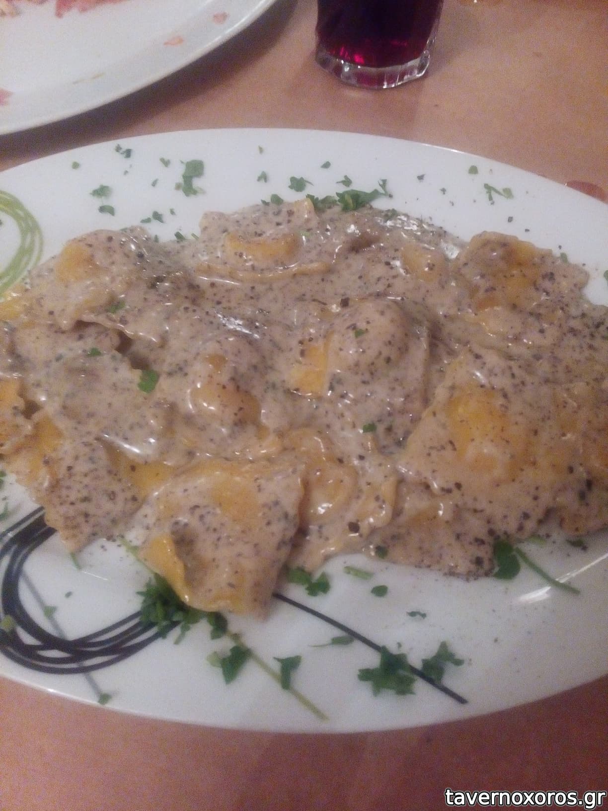 "Ravioli al miele in salsa tartufata" μεταφρασμένο "ραβιόλι γεμιστό με πεκορίνο και μέλι, με σάλτσα τρούφας" (πολύ καλό)