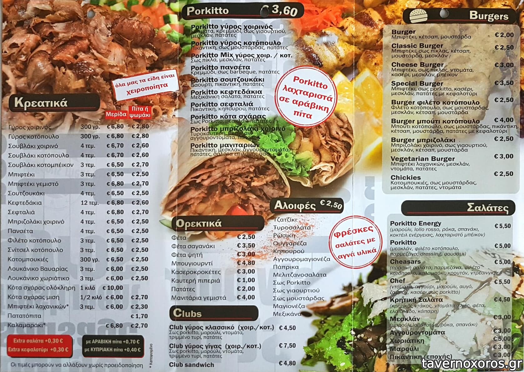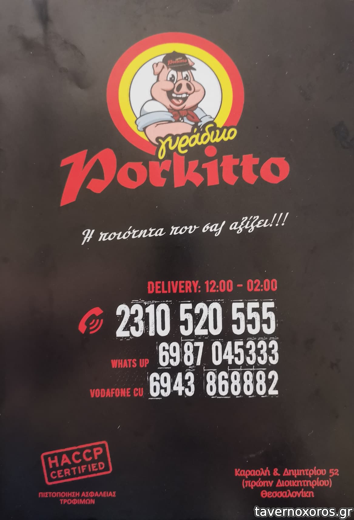 | Λέξεις κλειδιά | Porkito, Πορκίτο, Porquito, #σουβλάκια, #σουτζουκάκια, #πανσέτα, #κεφτεδάκια, #λουκάνικο, #σνίτσελ, #μπιφτέκι, #μπιφτέκι γεμιστό, #μανιτάρια, #κοτόπουλο, #burgers, #club sandwich, #πάπρικα |