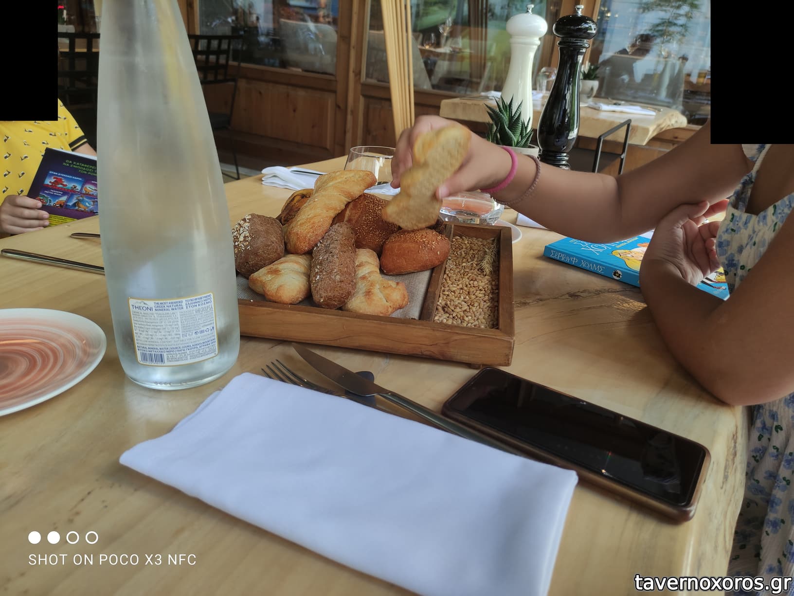 Καλωσόρισμα με ζεστή σούπα τραχανά, αρωματισμένη με θυμάρι και ξινοτυρι. Και αχνιστα φρέσκα ψωμάκια ποικιλία άλλα με τυρί άλλα με ελιά και άλλα σκέτα