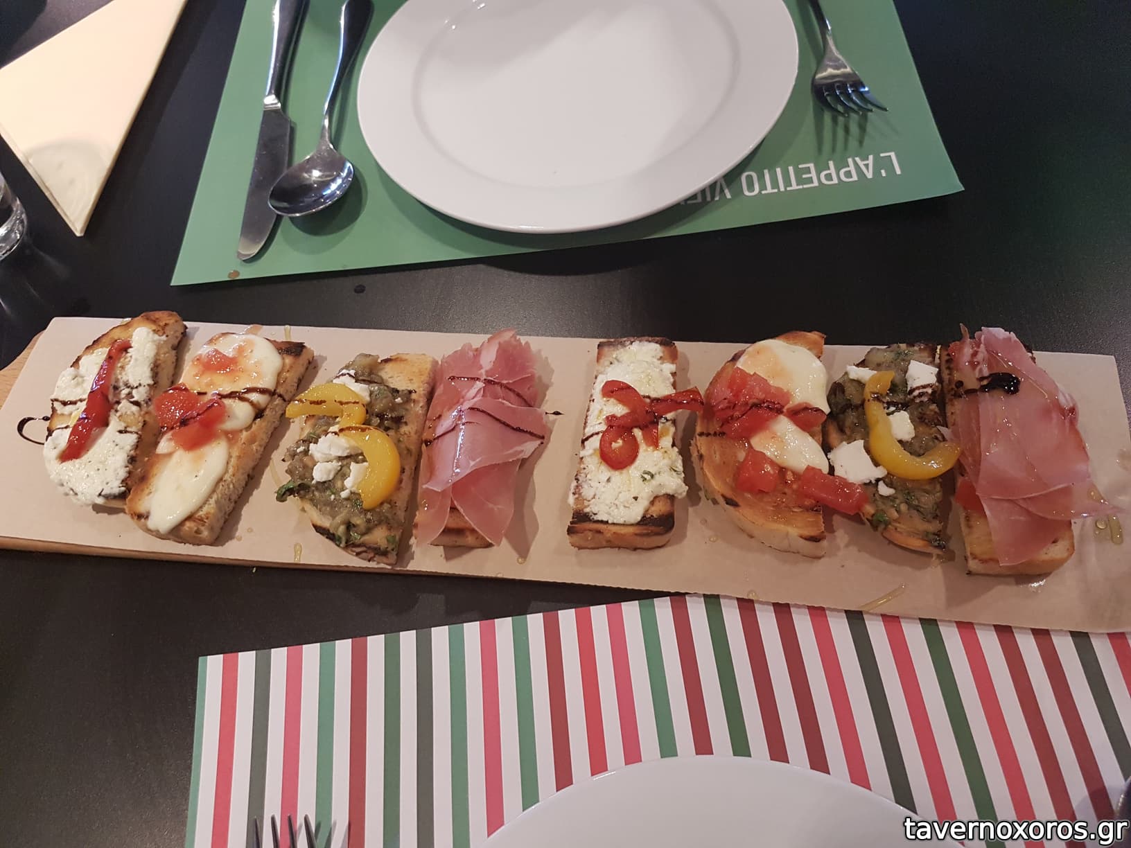 Bruschetta mista (μια χαρά, ειδικά αυτό με το προσούτο)