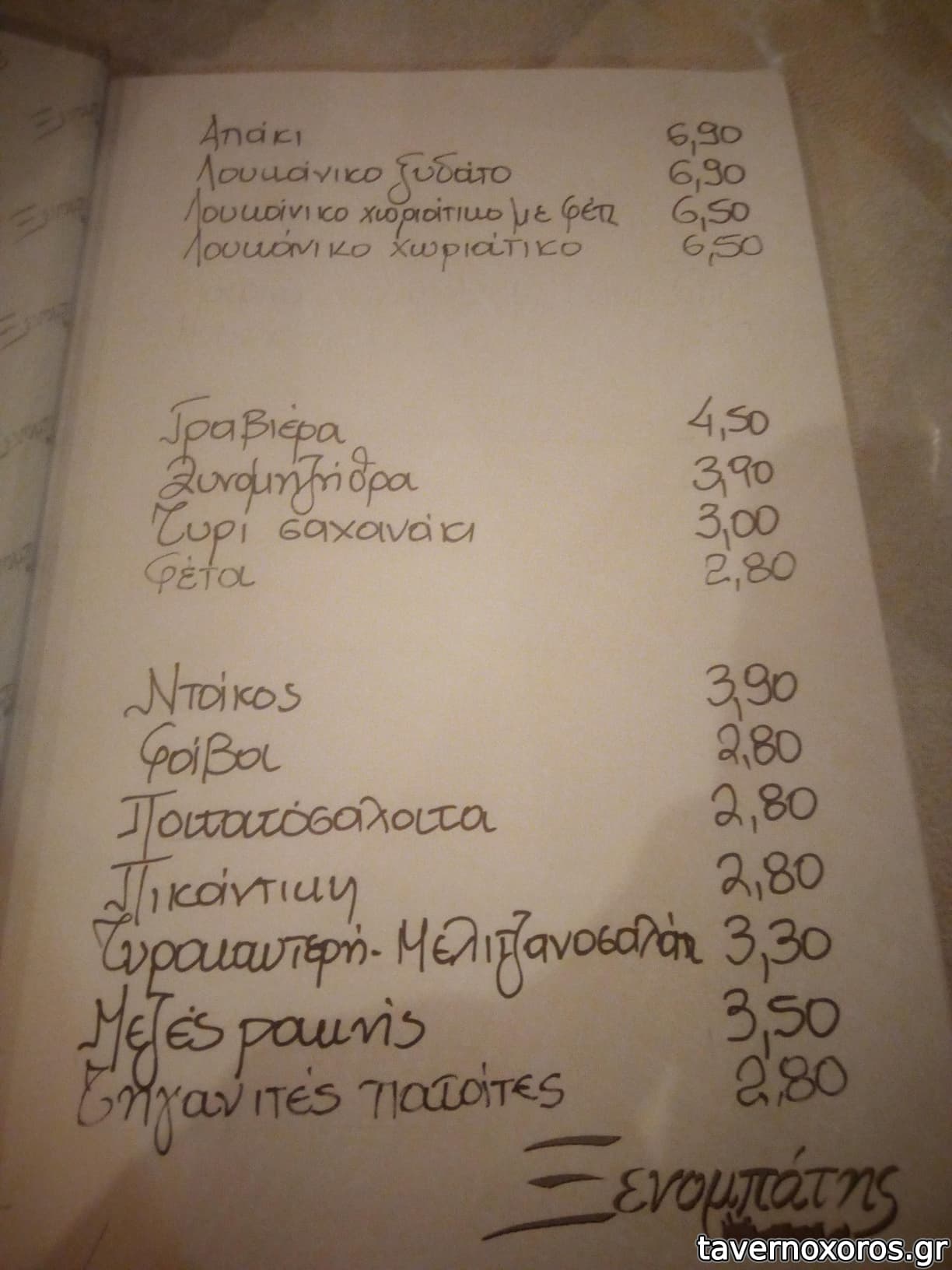 Ντάκος πολύ καλός, Πατατοσαλάτα (σαν) εμπορίου καλούτσικη, Φάβα οκ. Λουκάνικο Ξυδάτο πολύ καλό, Απάκι απλώς οκ. Ρακή πολύ καλή, και χωρίς παρενέργειες, και στο τέλος μας *κέρασαν* μία 200ml. Τσιγάρο υπήρχε, αλλά πλέον ανοίγουν πορτούλες και υπάρχει αερισμός ;