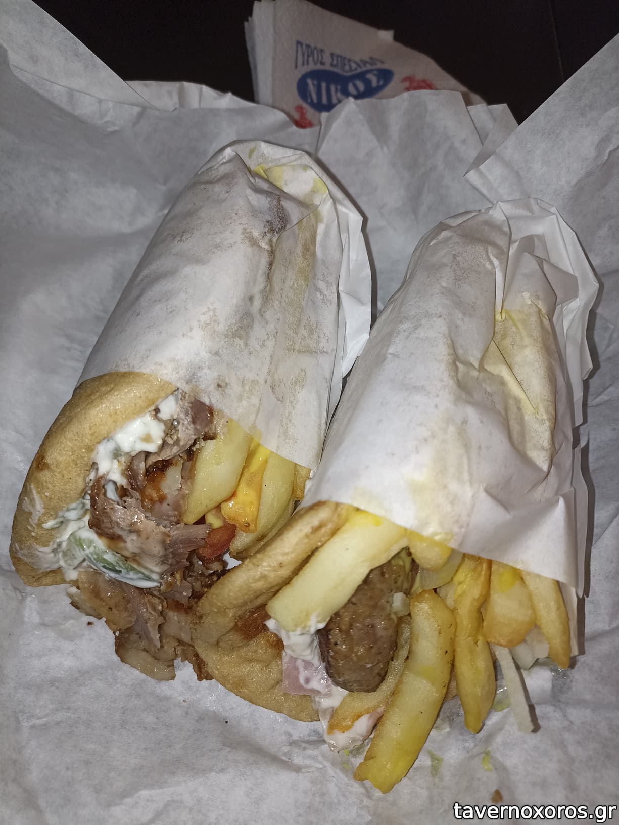 Αριστερά γύρος χοιρινός (παραμένει πολύ καλός και εθιστικός, η πίτα όπως πρέπει). Δεξιά μπιφτέκι (κάπως αδύναμο)