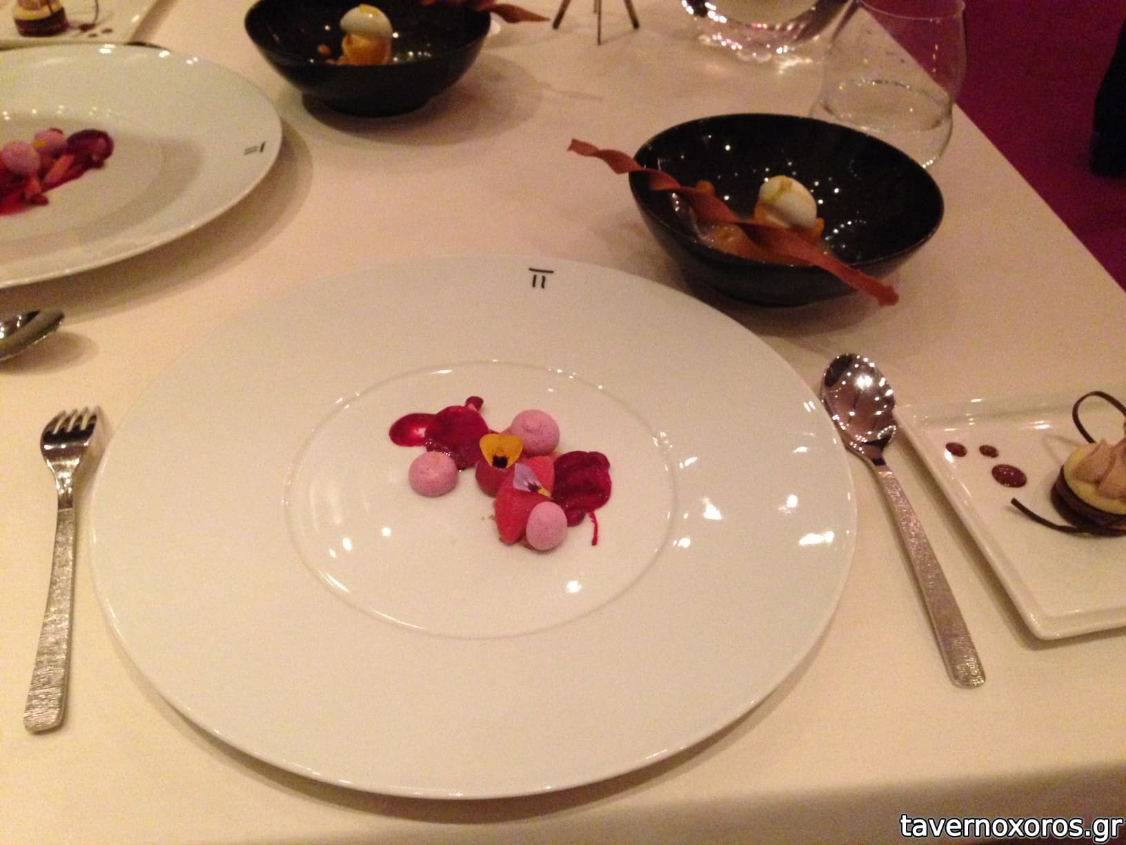 Την βδομάδα που πηγαμε ο Pierre Gagnaire ήταν στο εστιατόριο όποτε κ δεν μπορώ να το συγκρίνω με το αλλο στο Παρισι. Μπαινοντας τον είδαμε (ανοιχτη κουζινα) να μαγειρευει κ αργοτερα ήρθε να χαιρετήσει καθε τραπεζι.