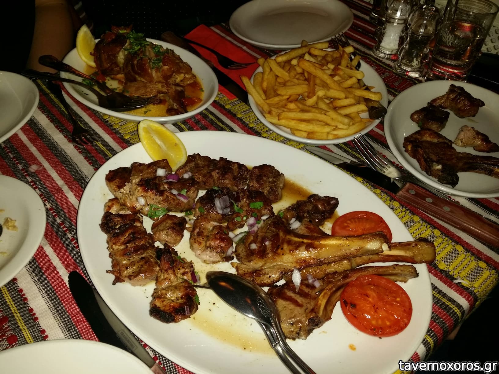 Και όντως, έφαγα καταπληκτικά κρέατα στην Αφροδίτη, χοιρινό /κοτόπουλο/αρνάκι σουβλάκι έλιωναν στο στόμα. Τα αρνίσια ribs του πολύ καλά ψημένα-αλατισμένα. Και ένα άλλο ψητό φούρνου (το λέει κλέφτικο) και αυτό σαν να βγήκε από την κουζίνα μιας μερακλούς νυκοκυράς. Αλοιφές house made-ok προς καλές, πατάτες τηγανιτές προκατ, πιτές κυπριακές ζεστές αντί ψωμιού, φοβερό χαλούμι κτλ.
