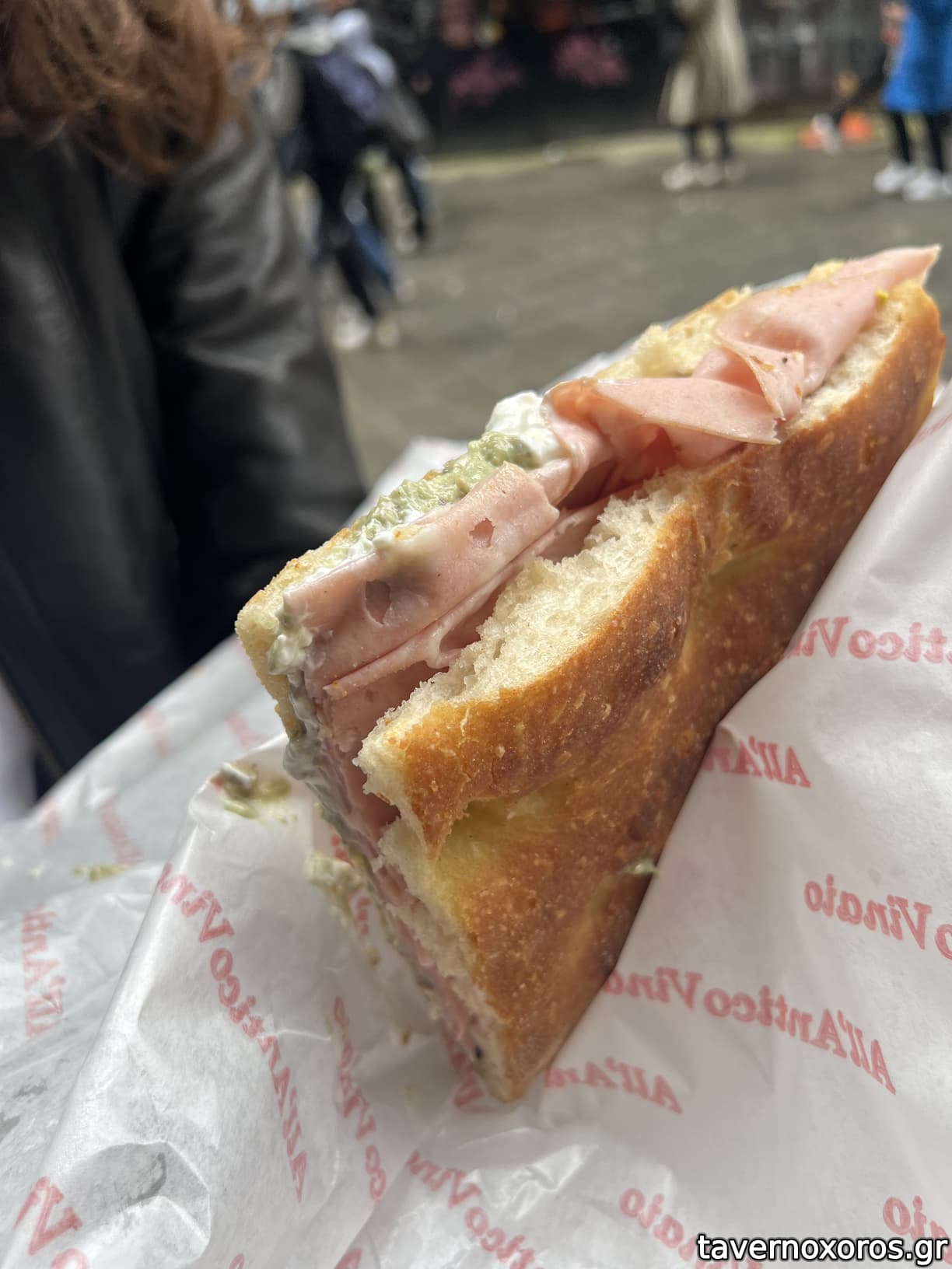 10 euros το σαντουιτσς πλέον, πολύ καλό ωστόσο. Έχει γίνει τόσο διασημο που υπήρχαν 3 ατομα να ρυθμίζουν την κυκλοφορία στον δρόμο και να κατευθύνουν τους τουρίστες στα 3 πλέον μαγαζια το ένα διπλα και το άλλο απέναντι.