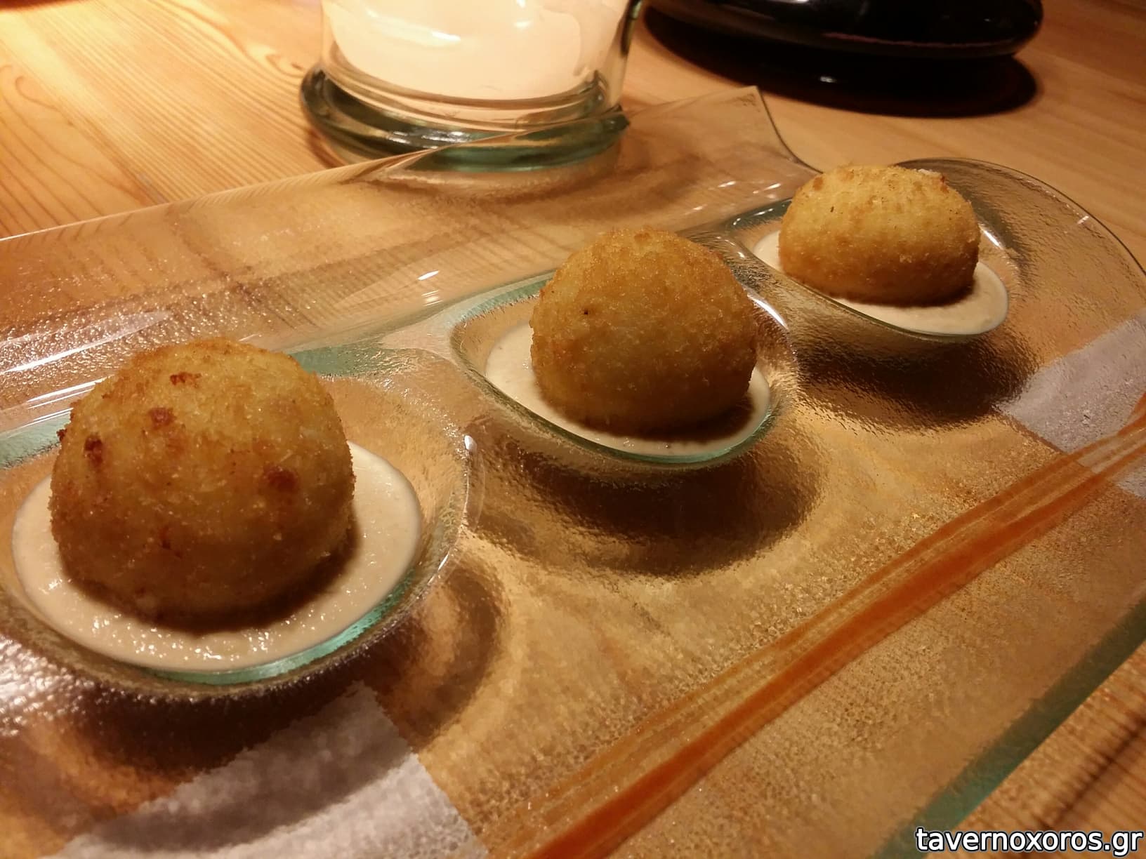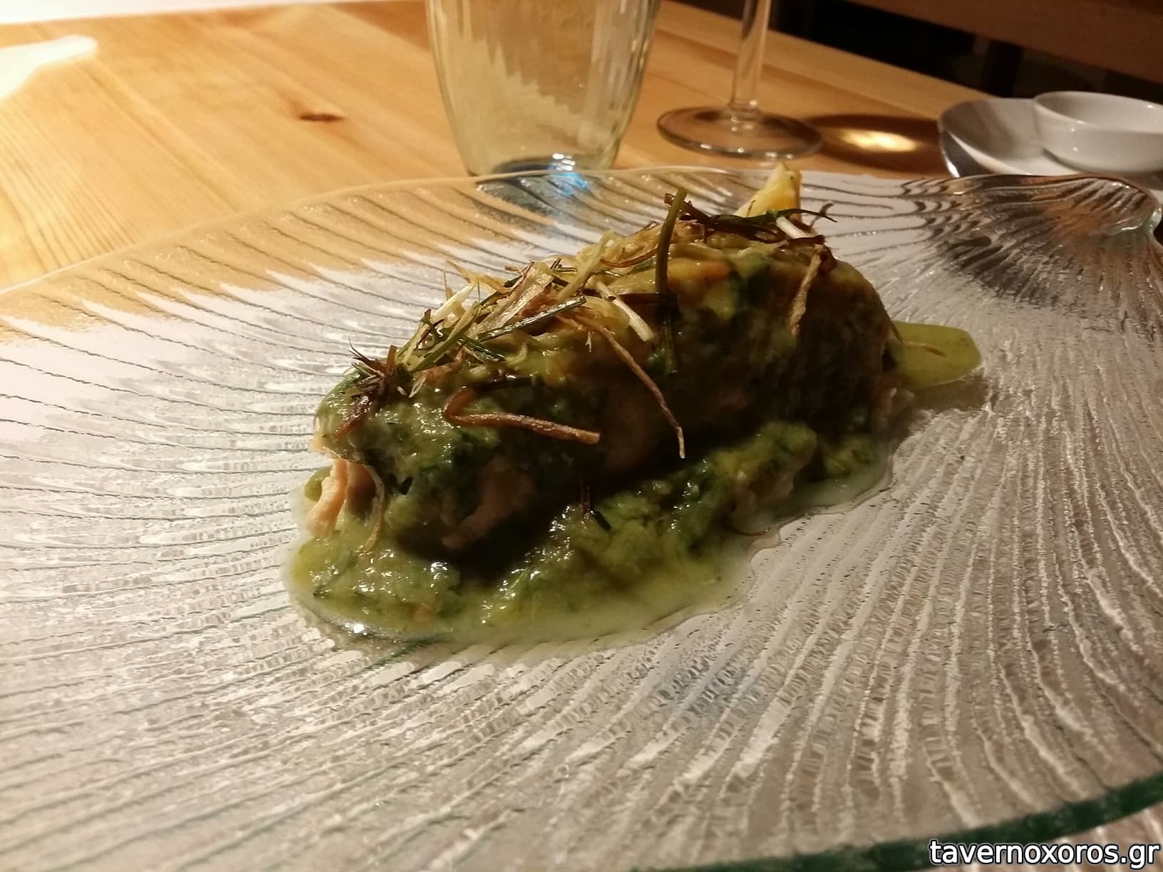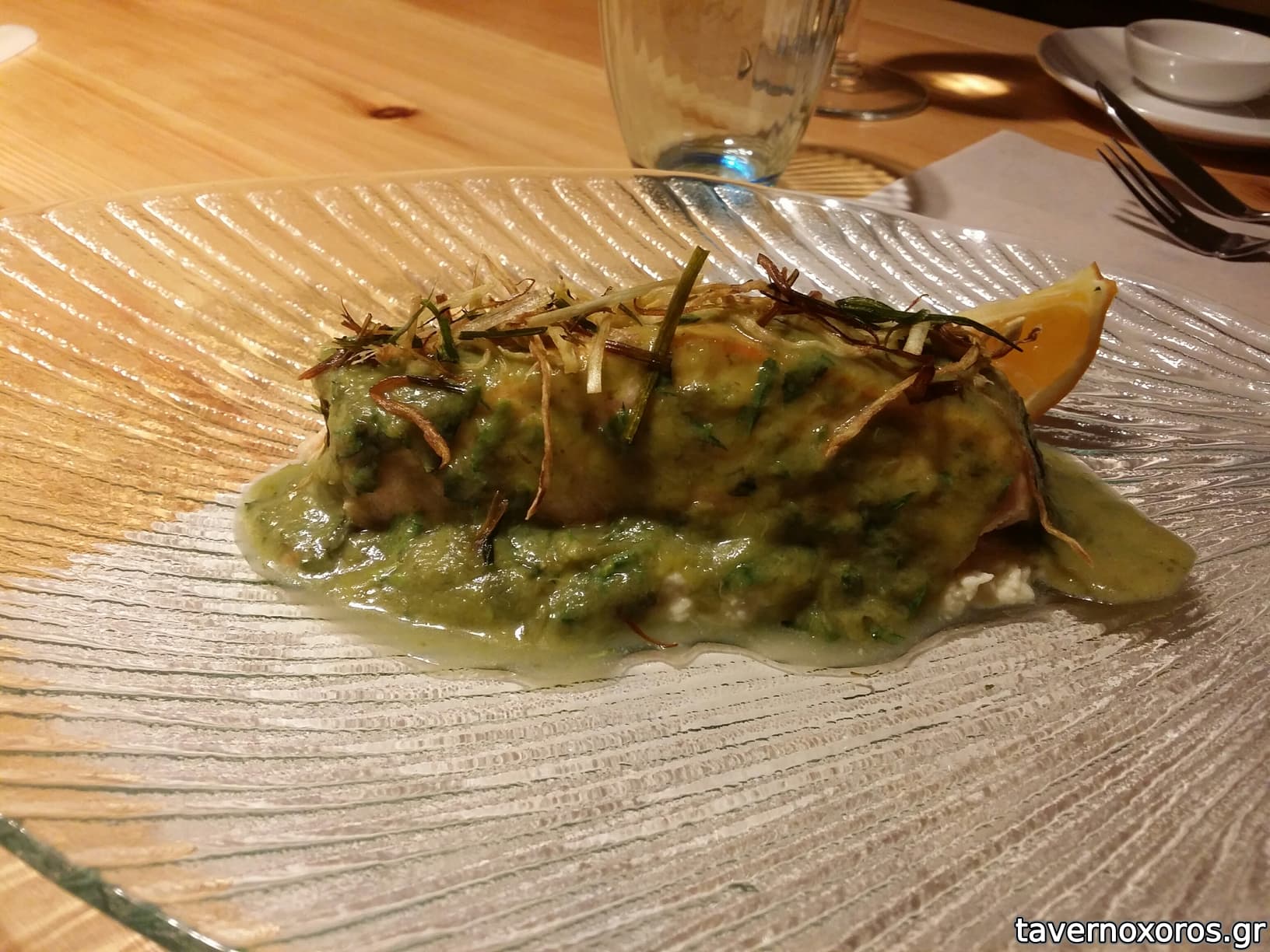 "Backed Salmon, celery root puree, tarragon white wine sauce" (ενδιαφέρον)