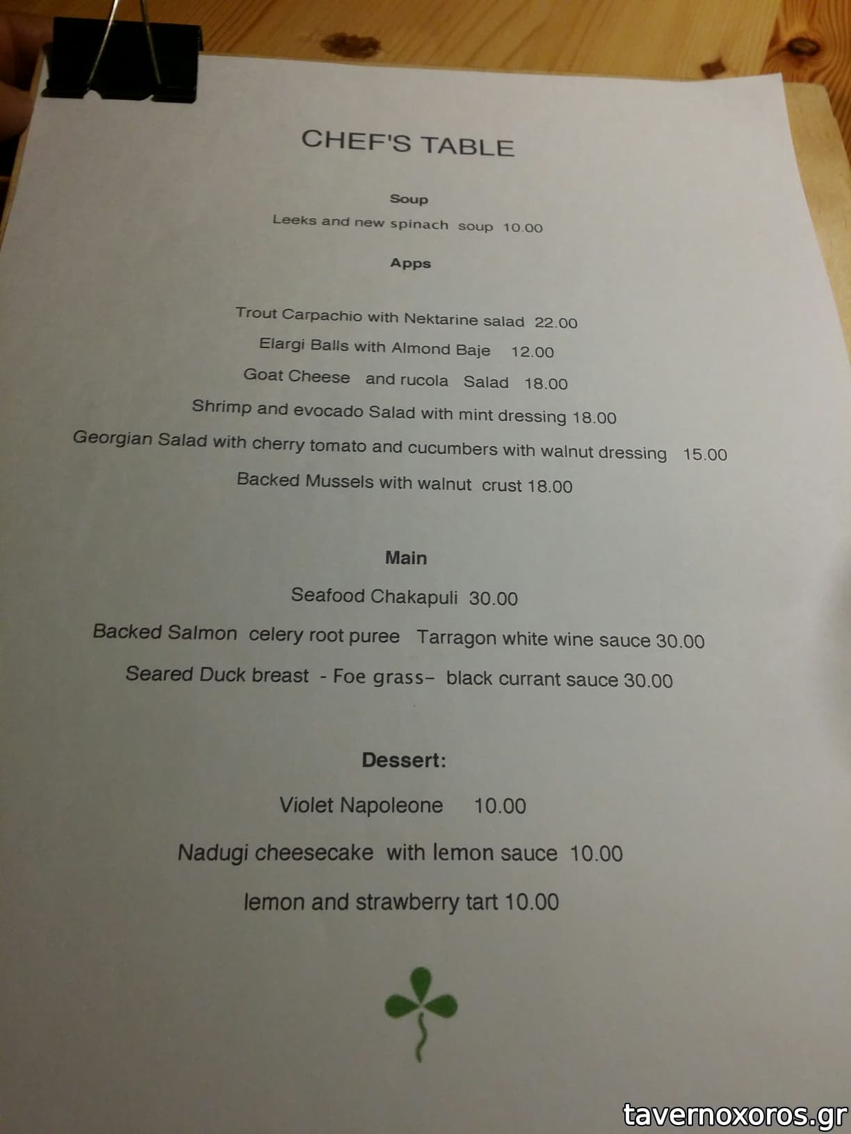 Φαγητό στο σύνολο ήταν απλώς ΟΚ. Προσπαθεί να βγάλει γεωργιανά-πειραγμένα πιάτα (κάτι σαν την δική μας new style ελληνική κουζίνα). Το αποτέλεσμα όμως δεν πείθει. Πέρα από το πιάτο του σολομού που ήταν κάτι διαφορετικό, όλα τα υπόλοιπα δεν μας άφησαν είπαν κάτι.