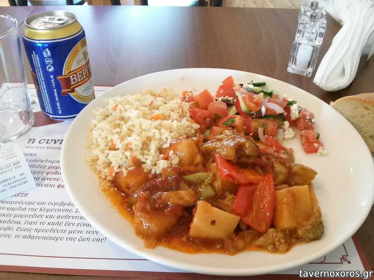 Τσεκάρισμα 2 φορές, μία με μουσακά και μία με μπριάμ. Τα βρήκα μια χαρά, χωρίς υπερβολές στη γεύση ούτε βαριά. Το συνιστώ για το μενού των 7 ευρώ. Σε μεγάλο πιάτο φορτώνεις όση σαλάτα θέλεις από τις διαθέσιμες (χωριάτικη, μαρούλι, caesar's κ.α.), διαλέγεις και σου βάζουν μερίδα από τα μαγειρευτά της ημέρας μαζί με γαρνιτούρα ρύζι ή πατάτες φούρνου. Επίσης περιλαμβάνεται μπίρα, χυμός, αναψυκτικό ή νεράκι και τέλος φρούτο ή γλυκό. Το καρυδάτο που δοκίμασα ήταν επίσης καλό. Απόδειξη κανονικότατα.