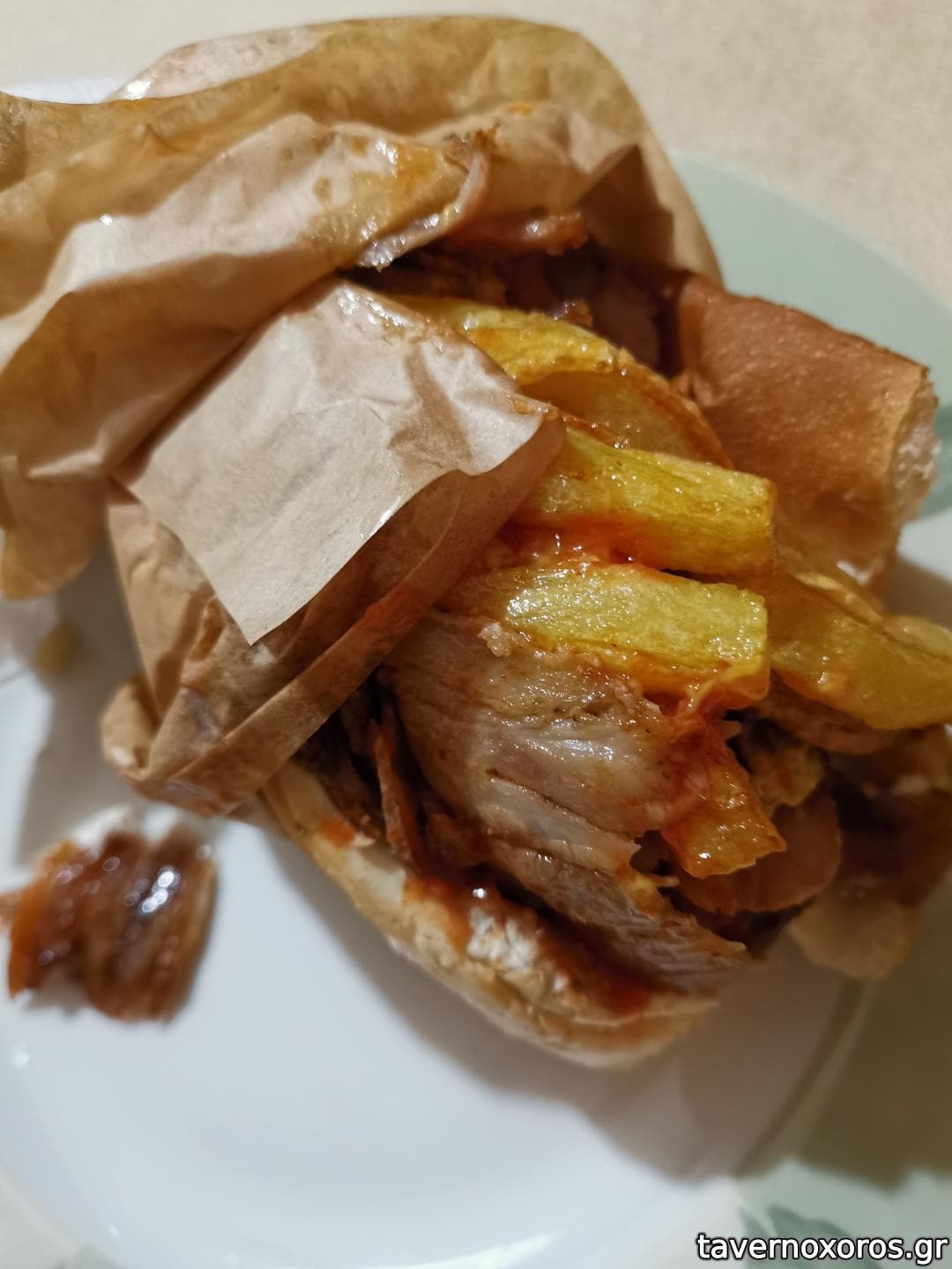 Μερίδα γύρος. Υπεραλμυρός αλλά καλοψημένος και νόστιμος ο αναθεματισμένος.