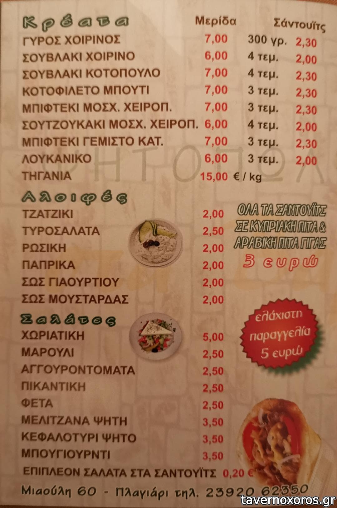Εξ όσων δοκίμασα θεωρώ καλύτερο τα μπιφτεκάκια τους, αλοιφές οι κλασσικές του εμπορίου ενώ οι πίτες είναι αρκετά αφράτες και ένα τσικ λαδωμένες (νόστιμες)