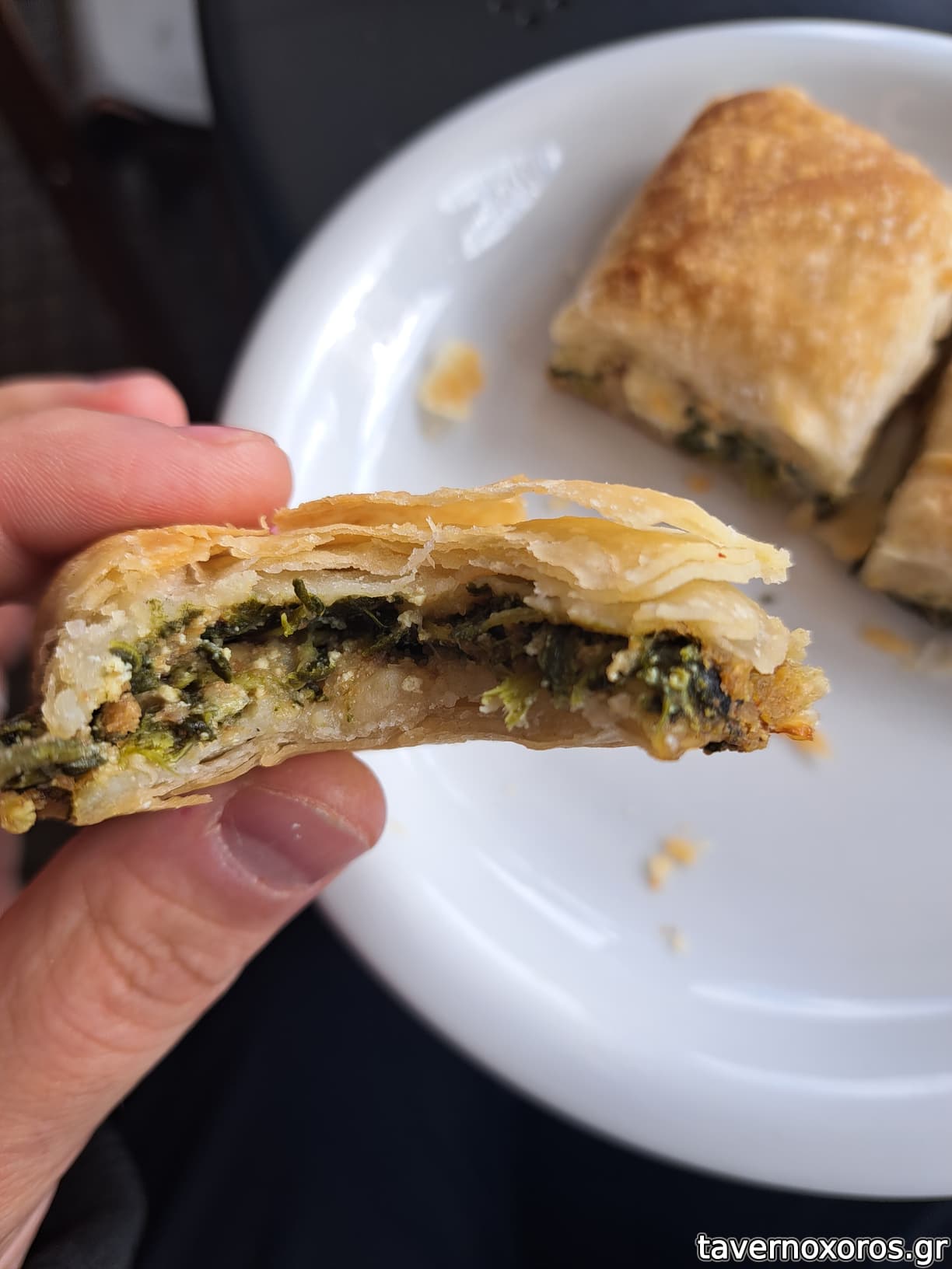 Πέρασμα για δοκιμή σπανακοτυρόπιτα με χωριάτικο φύλλο, μου δόθηκε σε 4 μικρά τετραγωνάκια. Το φύλλο ωραίο αν και ελαφρώς πανιασμένο, η γέμιση όμως σε διάφορα σημεία ήταν ελάχιστη παρόλο που ήταν πολύ νόστιμη και πολλές μπουκιές ήταν σκέτο φύλλο.